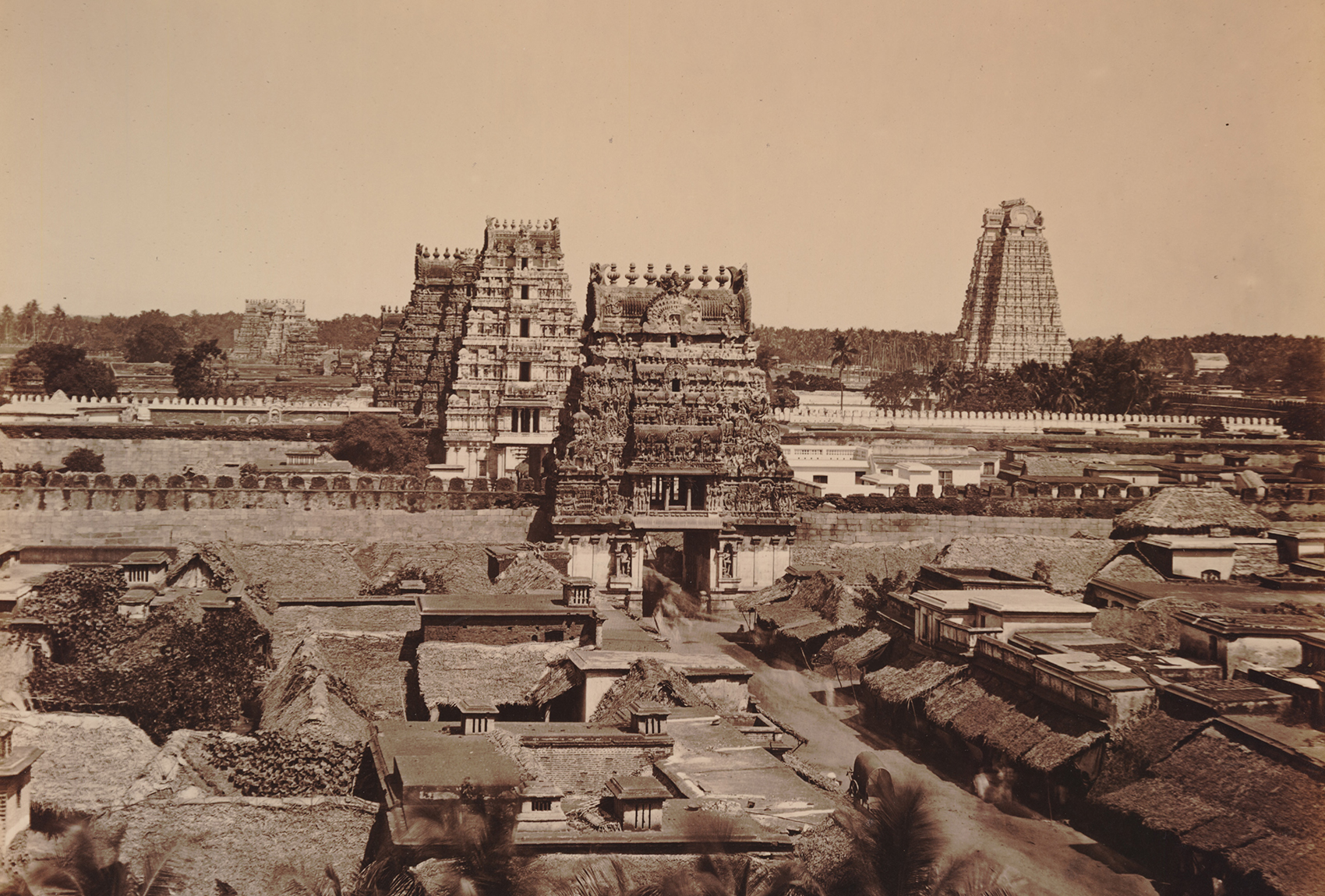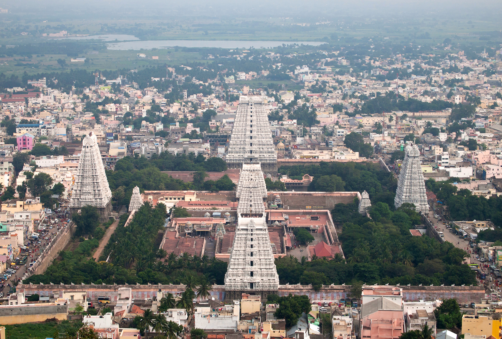 Just within the compound stand the two successive monumental gopurams.