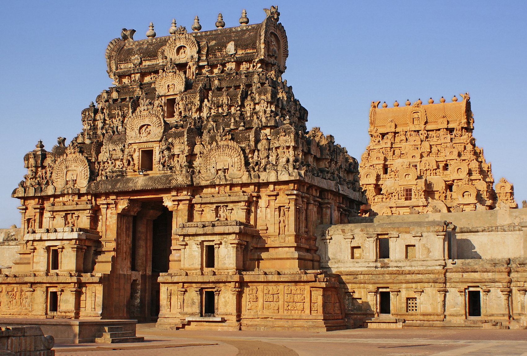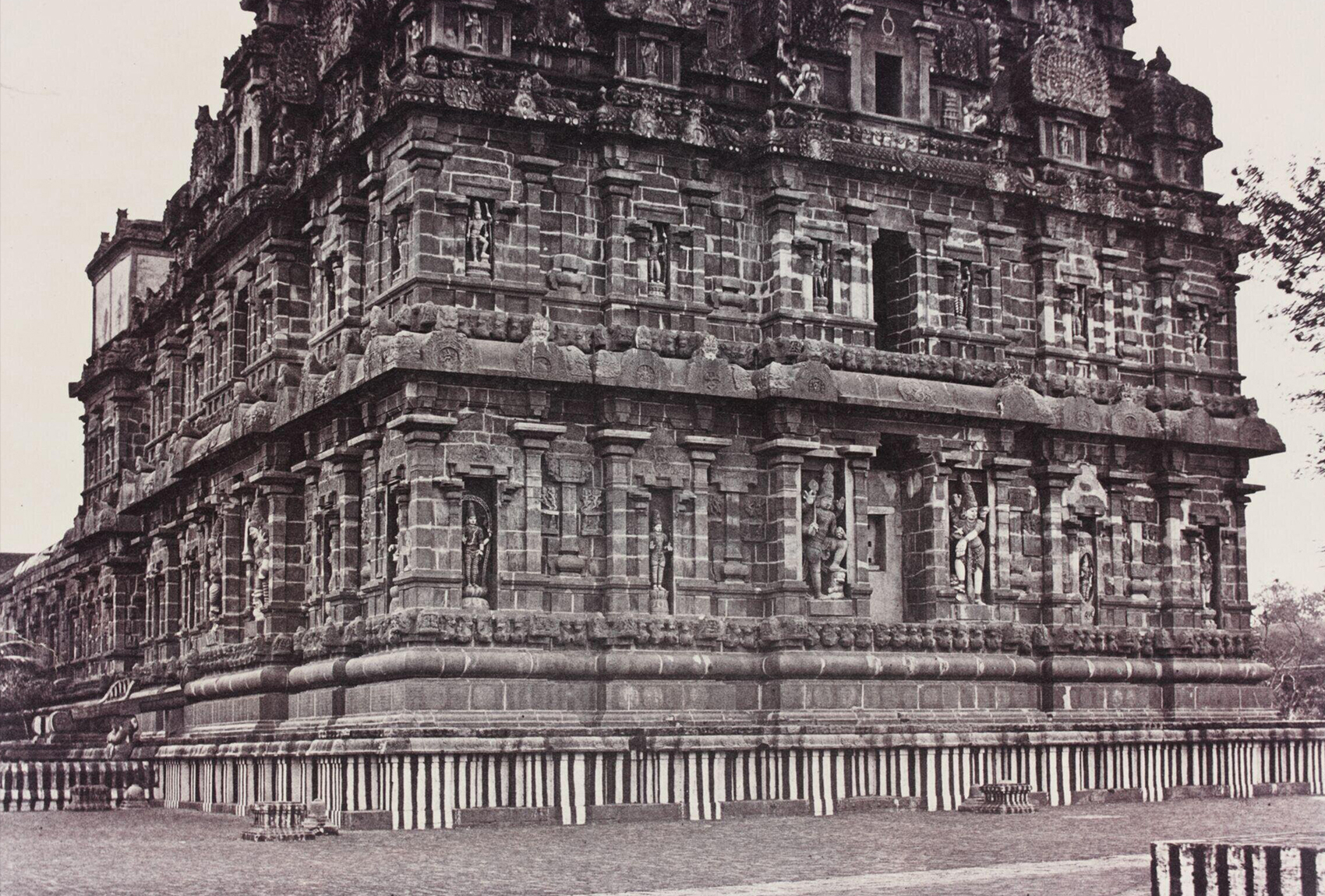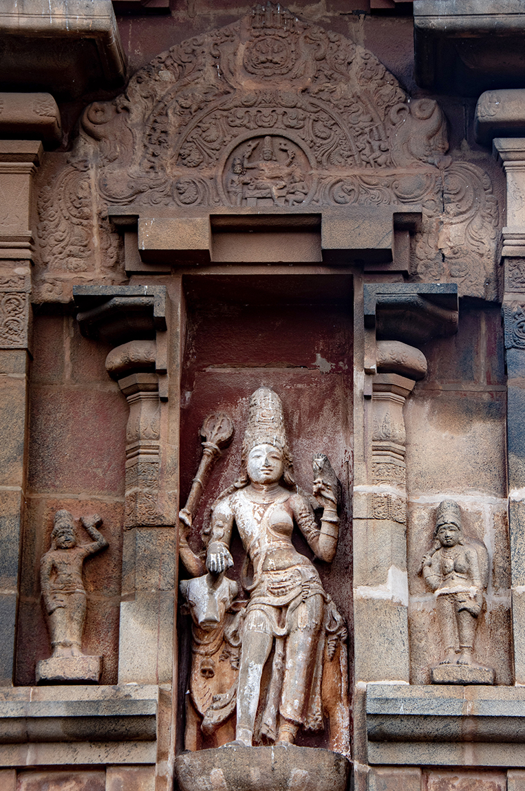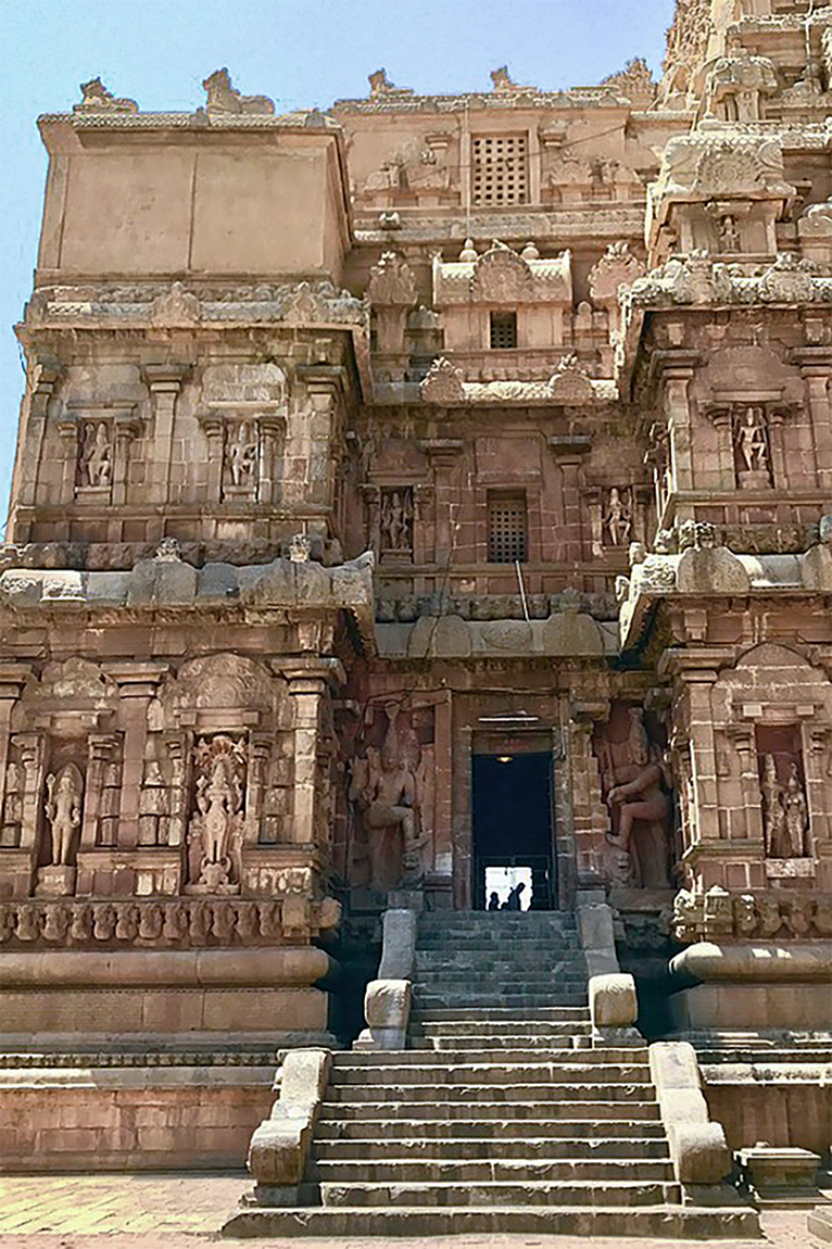 Heavily ornamented with sculptures depicting gods and scenes from mythologies, as well as minor shrines in hollowed niches, the Rajarajeshvaram’s gopurams also reflected the systematic linking of the temple, the state and the king.