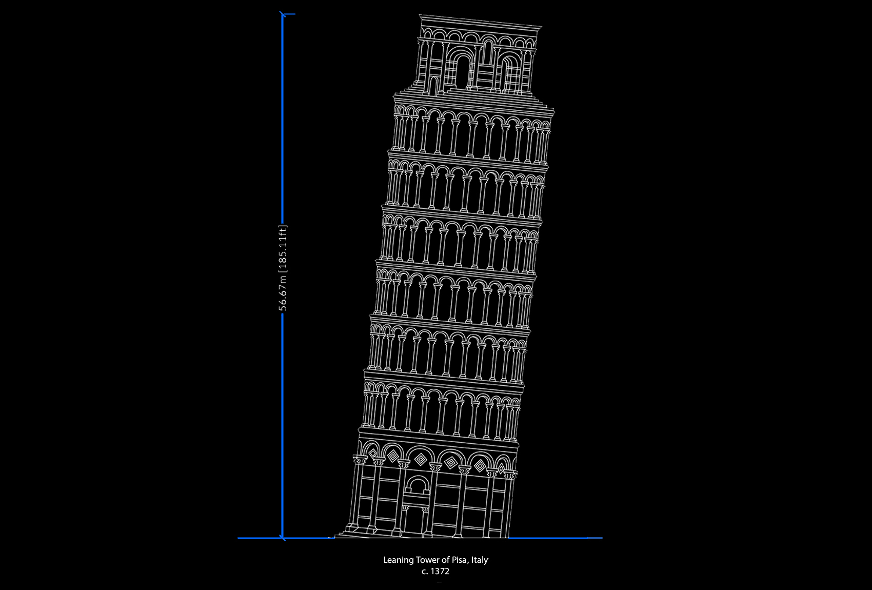 Even the legendary Leaning Tower of Pisa, whose construction began in 1173 CE, reached a height of only 56 metres when it was completed in the fourteenth century.