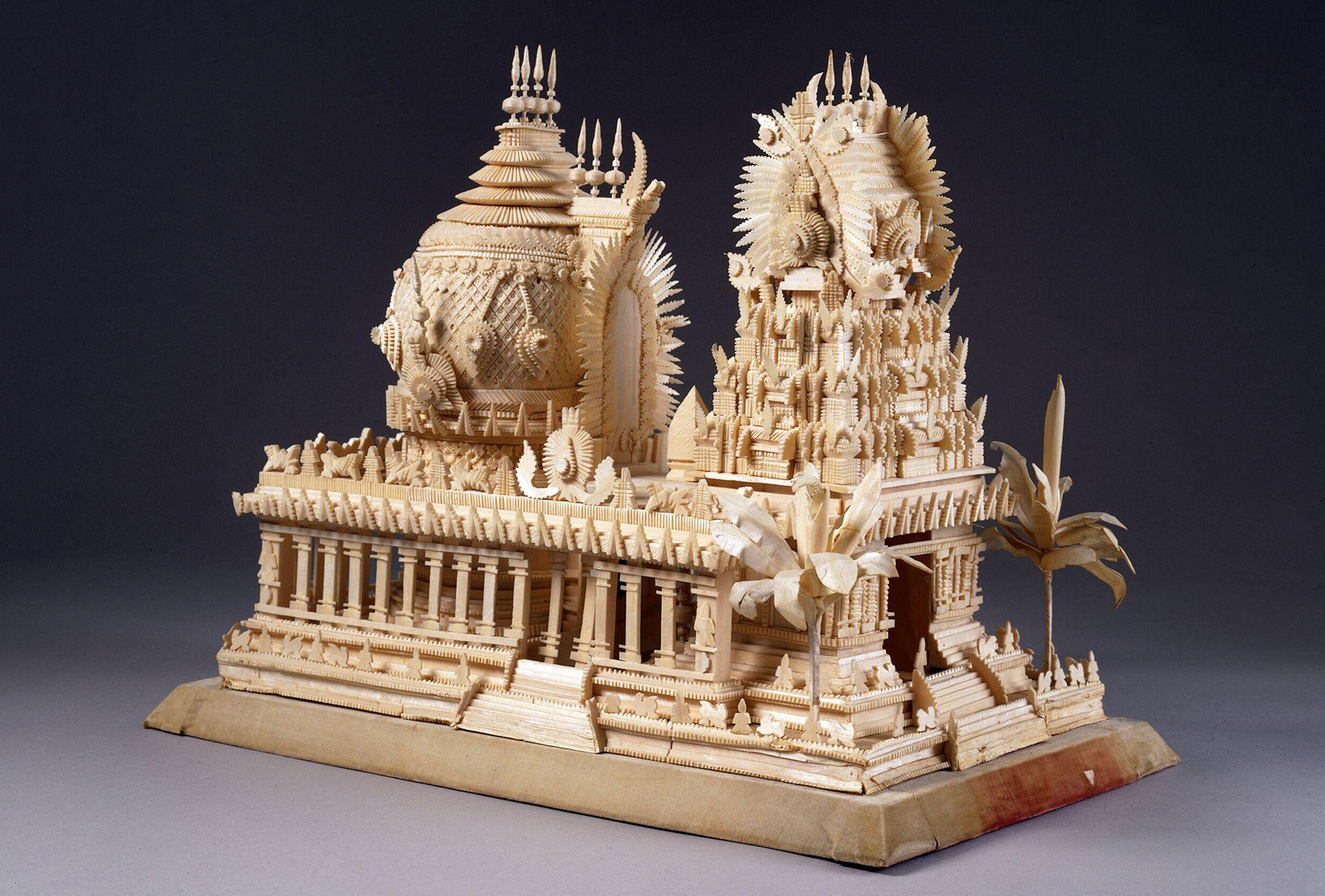 Two bands of leonine vyala or fantastical composite animals encircle the base, serving as a decorative as well as protective feature, much like the gopuram’s dvarpalas.