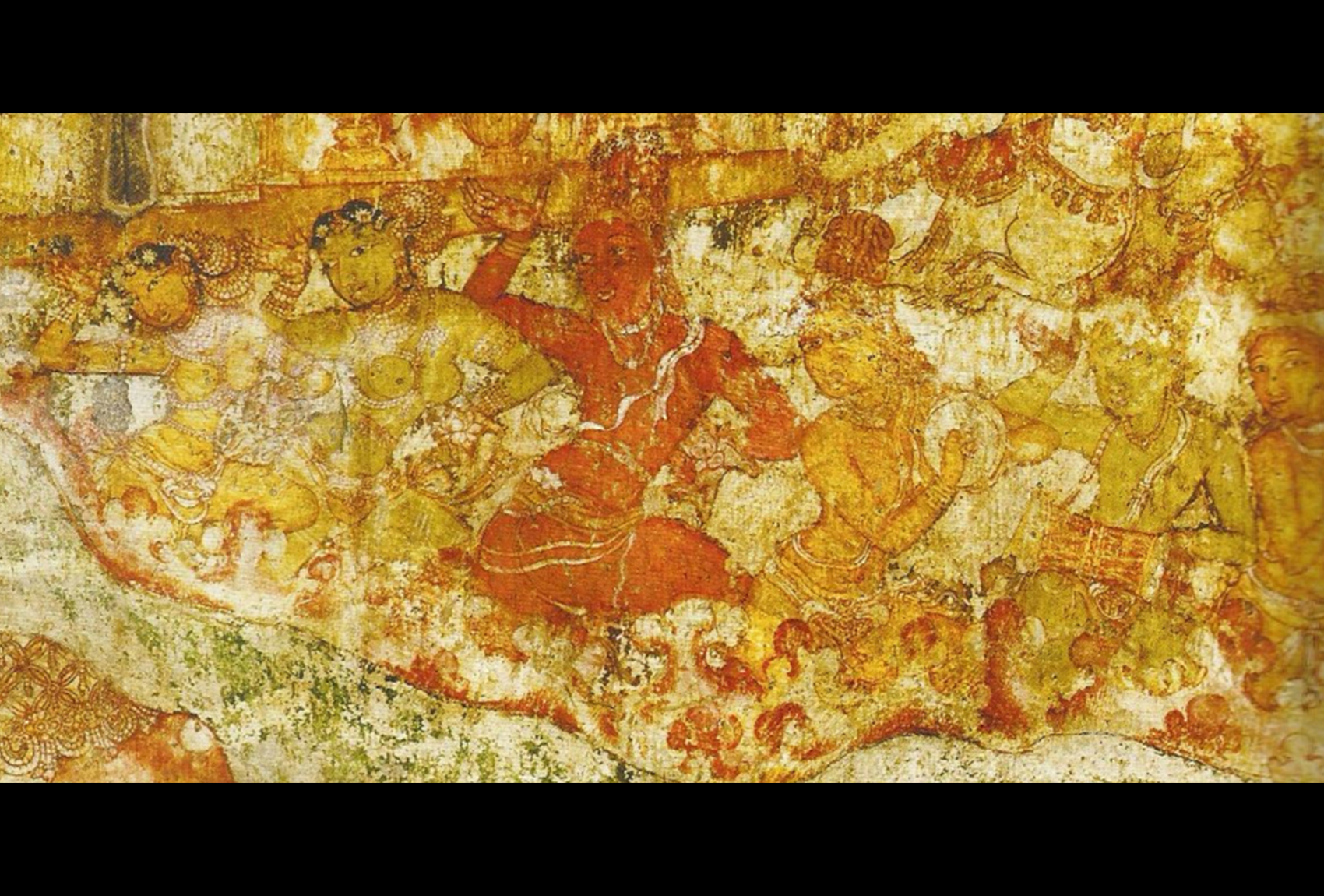 But they were painted over by Nayaka era-murals. This fact was only re-discovered in 1931 when a peeling layer of paint revealed part of the underlying fresco. Since then multiple preservation, restoration and documentation efforts have been undertaken by the Archaeological Survey of India to protect and study these paintings.