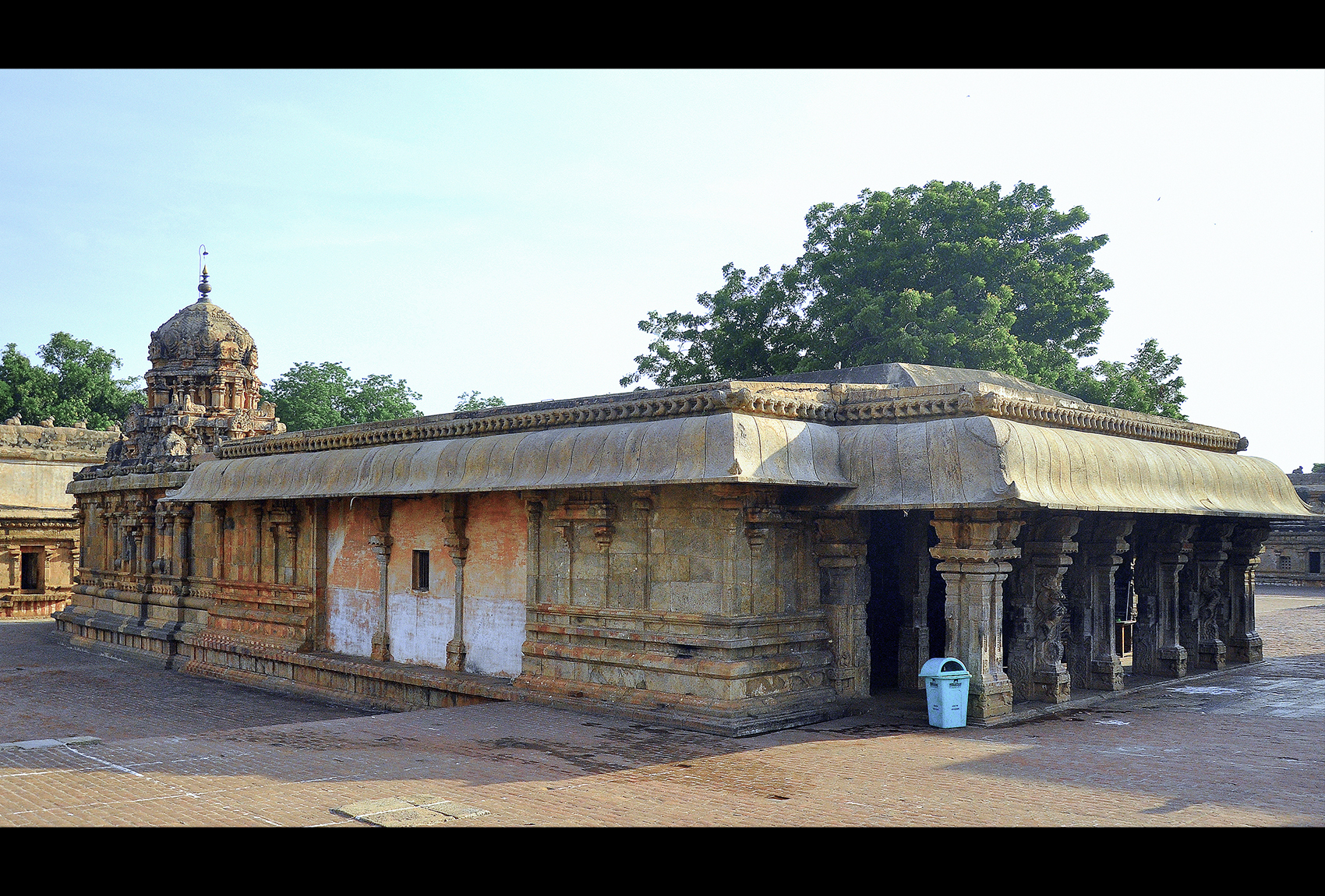 Many Dravida temples include a temple tank or pushkarini, integral to ritual purification. The Rajarajeshvaram shrine also had one, outside its north-western wall, but it no longer survives.