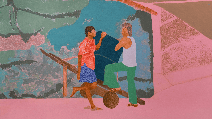 Two Men with Handcart; Gieve Patel; India; 1979; Oil on canvas; 176.5 x 144.8 cm. Courtesy Peabody Essex Museum, Gift of the Chester and Davida Herwitz Collection, 2003, and Google Arts and Culture