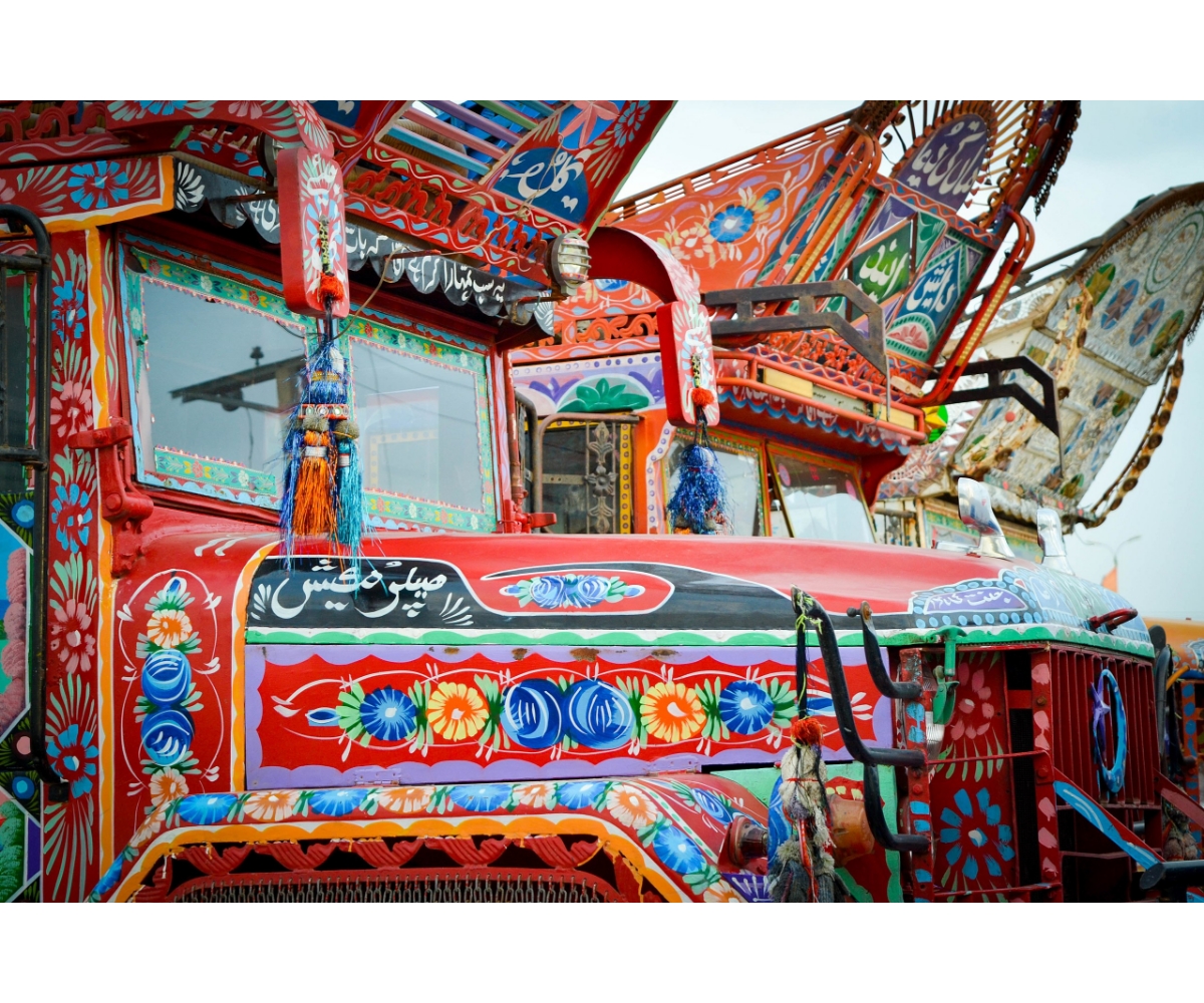The trucks of Pakistan belong to a long tradition of South Asian trucks that are adorned with poetic expressions, hand-painted art, vinyl stickers, good luck charms, and are representative of a trucker’s political and cultural identity as well as aspirations. So mesmerising is the psychedelic art form on Pakistan’s trucks — be it paintings, poetry, typography and calligraphy — that these are now widely exhibited, researched and catalogued. Much like their Indian counterparts, truck art in Pakistan is a historical artefact recording and responding to changing political and social climates.