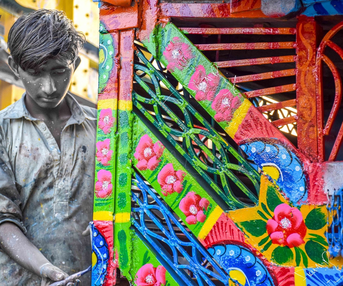 A Painter Decorating a Truck; Akhtar Hassan Khan Photography; c. 2019; Wikimedia Commons