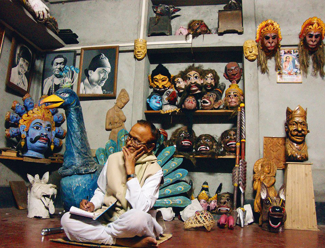 These handcrafted masks continue to be made across Assam today and are still used in bhaona and raas lila performances. Believed to be holy, they are worshipped before a performance and stored in the naamghars when not in use.