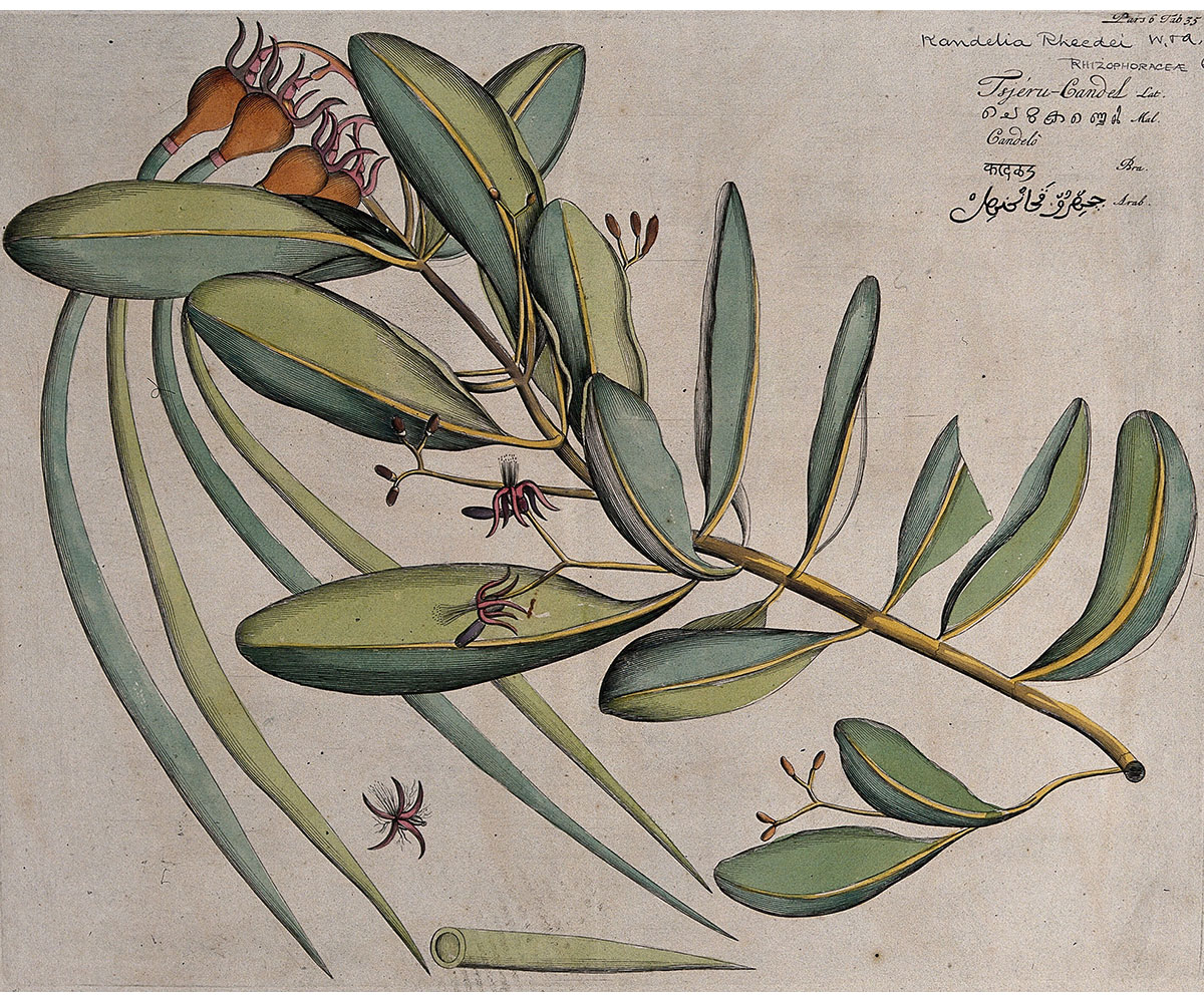 Kandel or Mangrove Plant; c. 1686; Coloured line engraving; Wellcome Collection