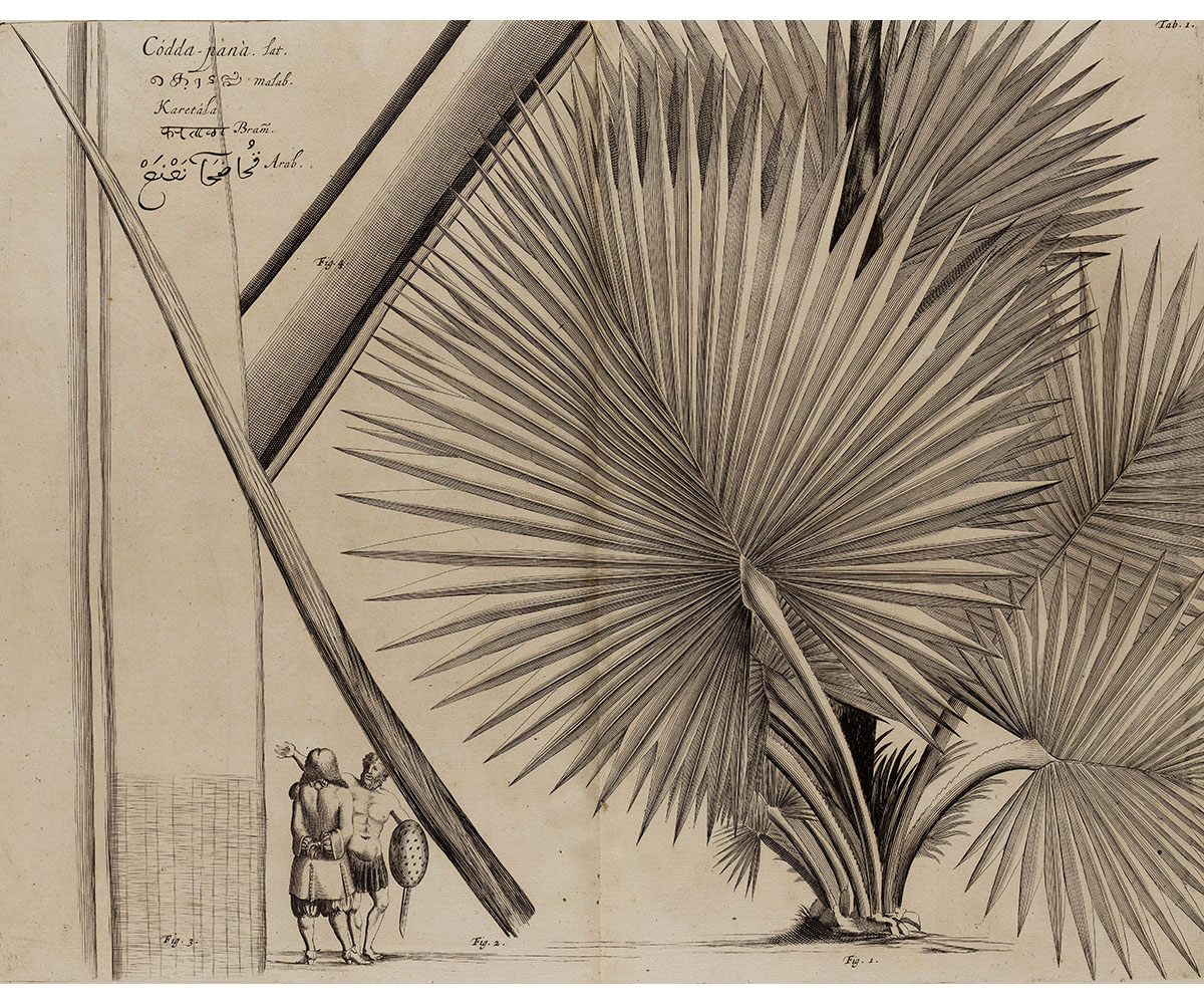 The Hortus Malabaricus relied on existing frameworks of local knowledge, drawing on generational indigenous wisdom of the land and the plants of the Malabar region. It was a significant work not only for the information it compiled, but also its intricate visual documentation of the astounding range of medicinal plants and trees that thrive on India’s southwestern coast. While it is perhaps the earliest publication of such breadth and detail on the flora of this part of the world, it was not the first European work to engage with South Asian ethno-botany.