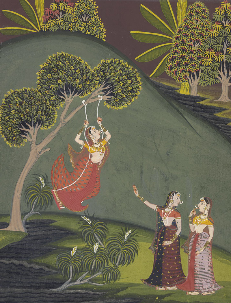 Woman on a Swing.; Manohar, Mewar, Rajasthan; c. 1680–1700; Opaque watercolour on paper; British Museum