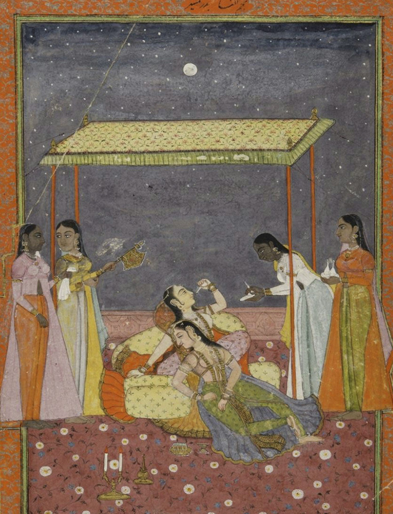 However, it would be a mistake to accept that women’s portraiture offered no resistance to the constraints of convention. Instead, it is within these very images depicting women laughing, conversing and being entertained in zenanas, terraces or gardens, that we find moments of carefree leisure and comfort. The zenana walls, intended to create spaces of seclusion, concurrently enabled spaces of liberation, encouraging a kind of freedom that was restricted in the public sphere.