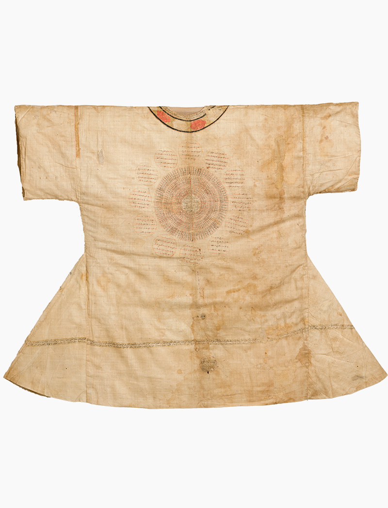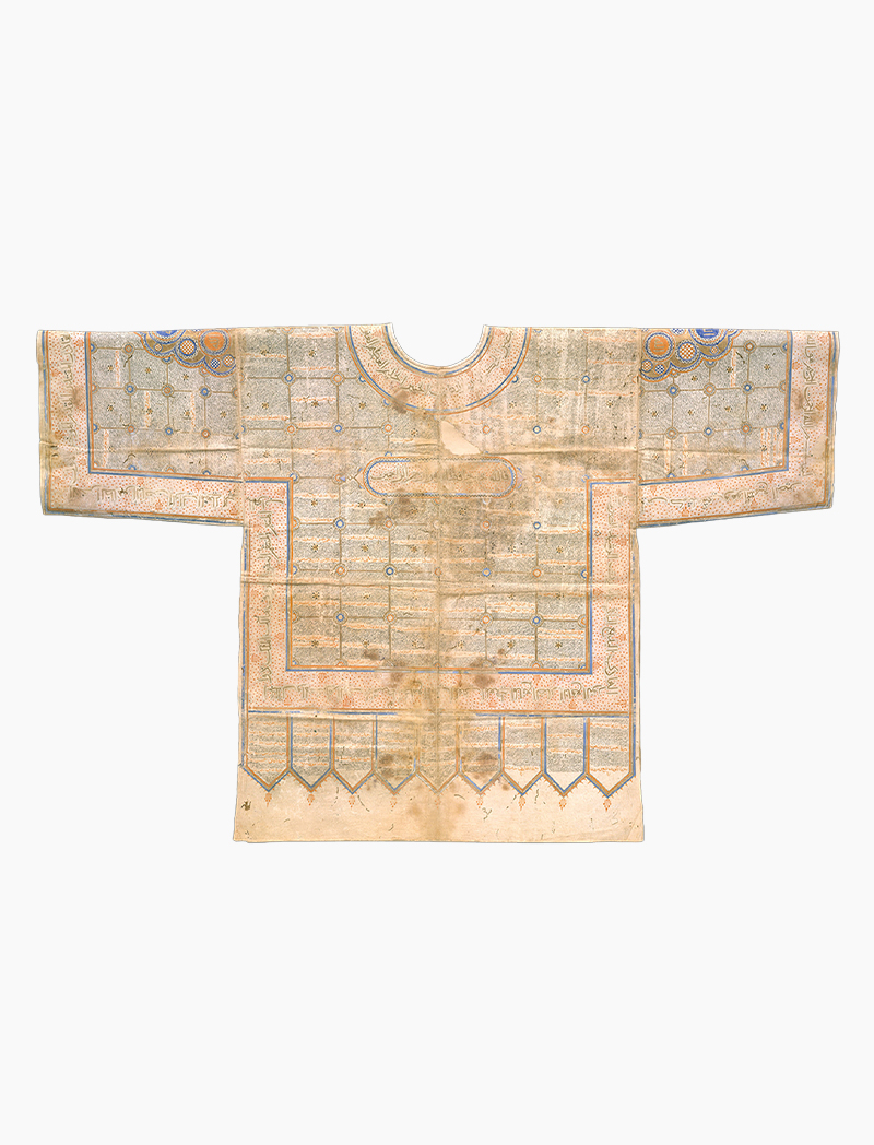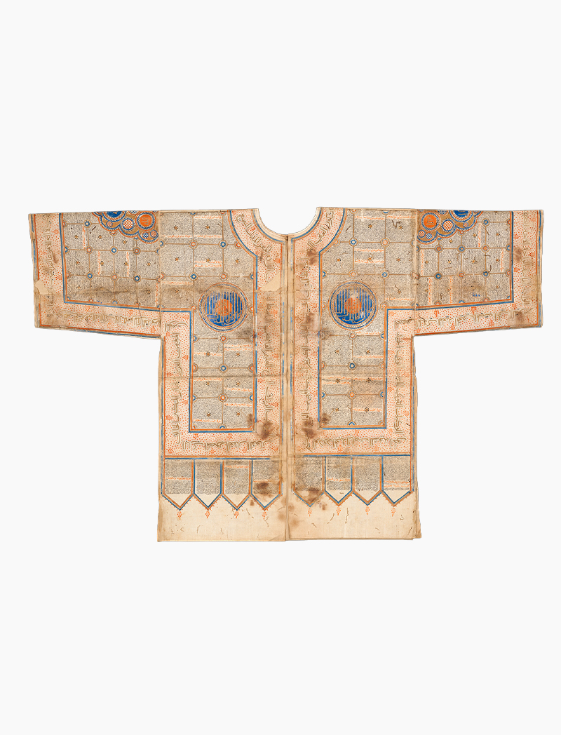 Part of Safavid, Ottoman, South Asian and West African cultures, talismanic shirts were worn by high-ranking warriors going into battle and came to be dubbed as “victory shirts” and “armour shirts.”