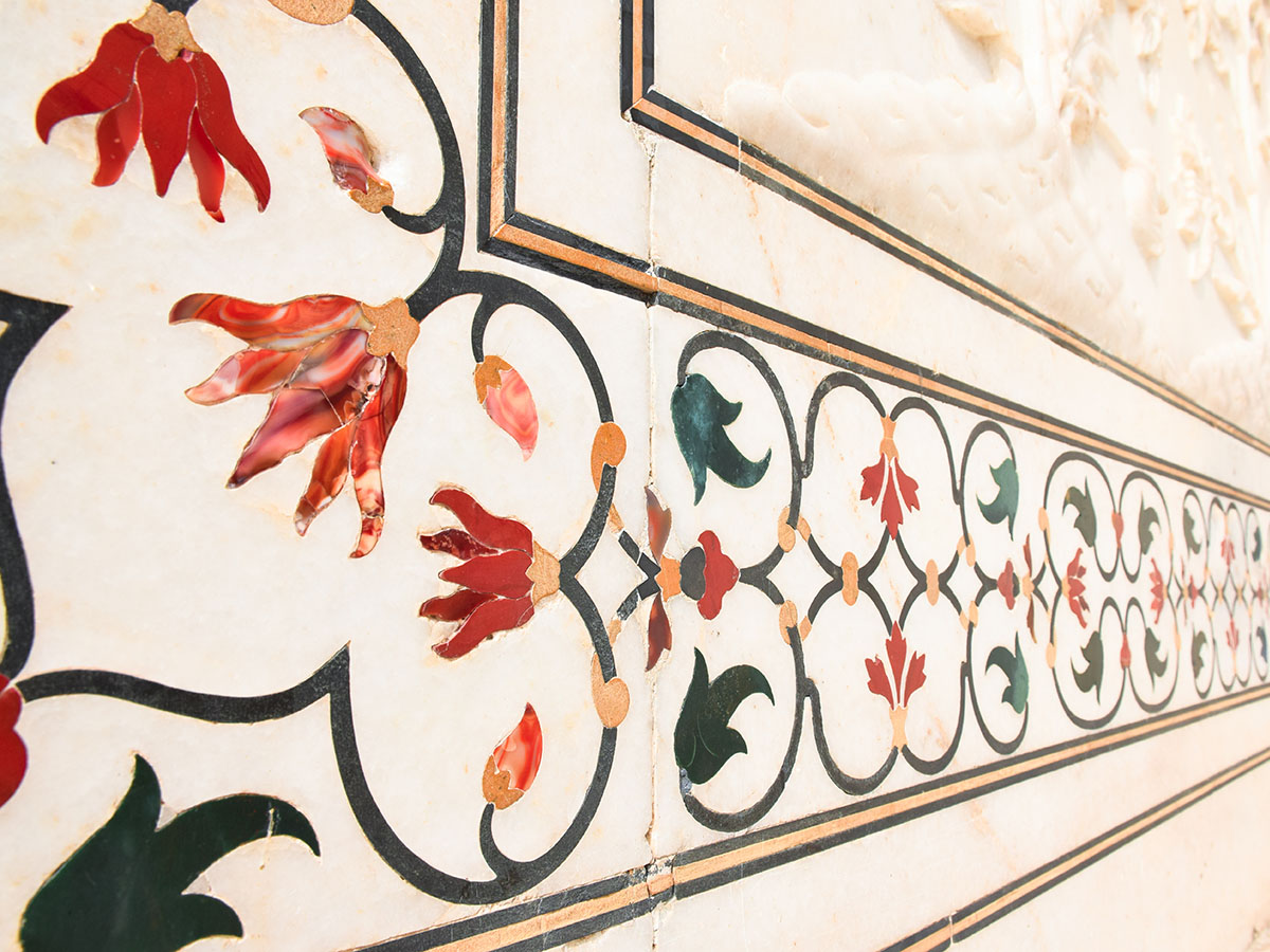 Still blooming as brightly as when it was first made, the floral ornamentation at the Taj Mahal has now inspired an entire industry of marble souvenirs and objects inlaid with stones that have become synonymous with the crafts of Agra.