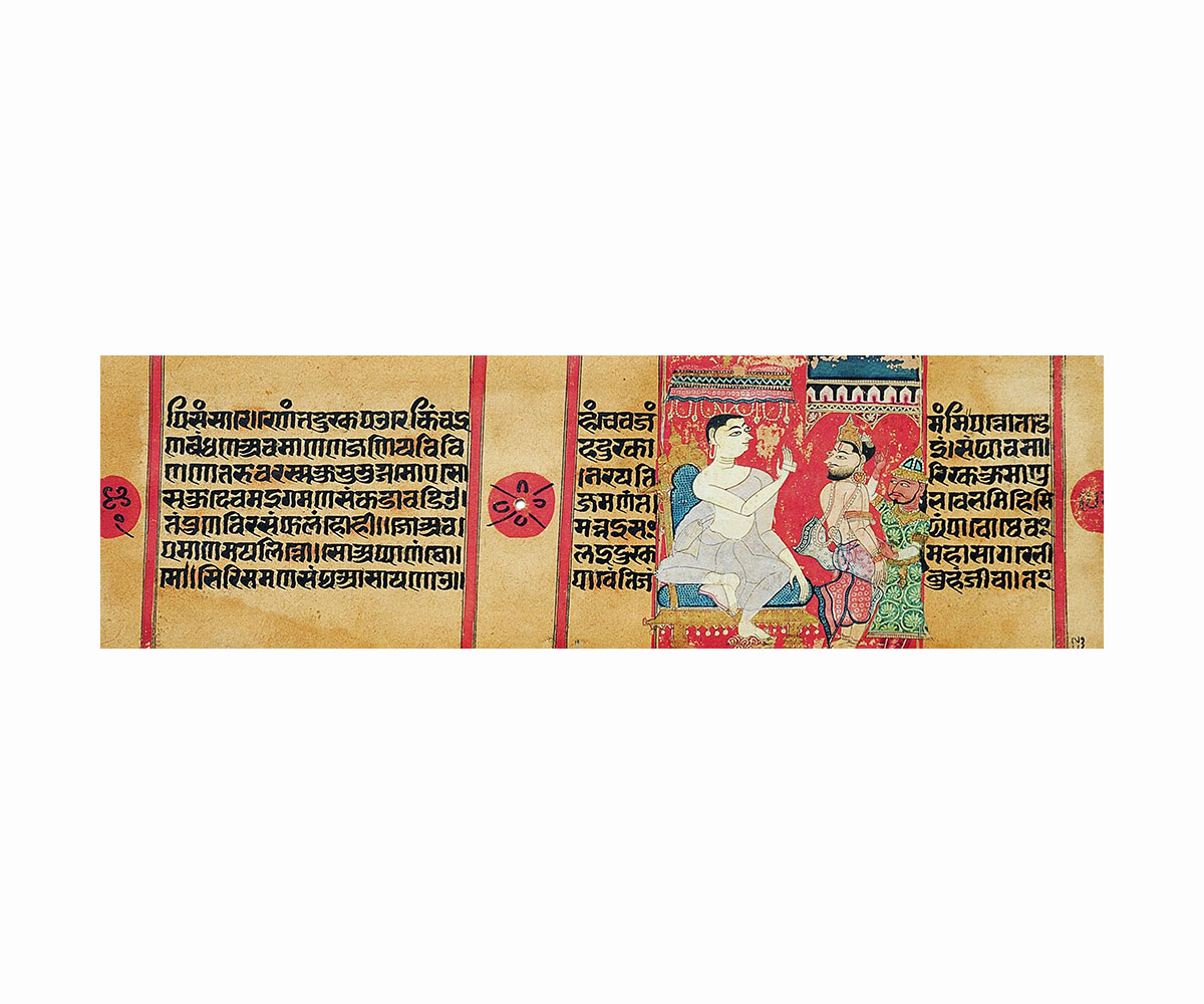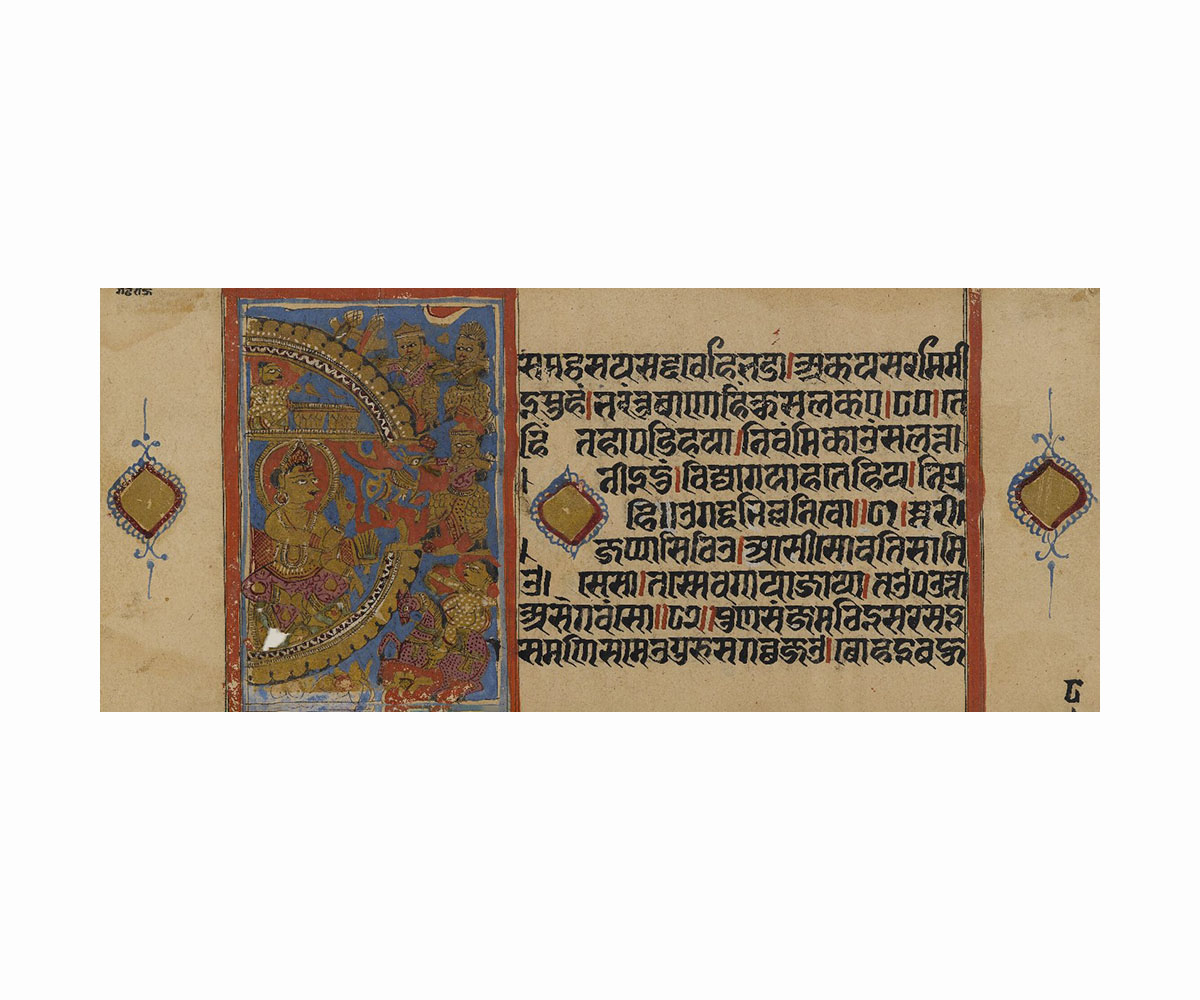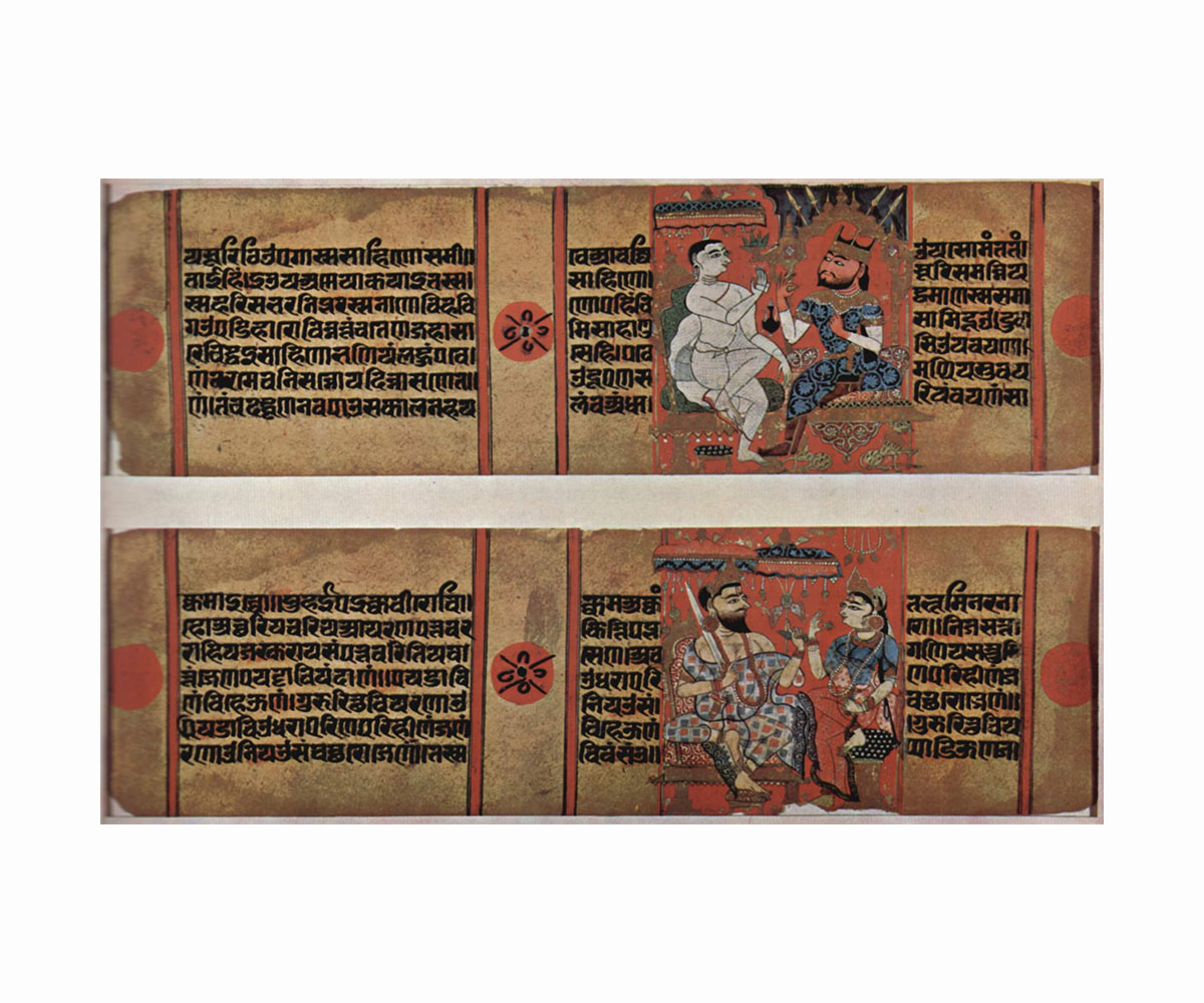 King Gardabhilla of Ujjain Before Kalakcharya (detail): Folio from Jain Manuscript of Kalpasutra and Kalakacharya Katha; c. 1st century; Chhatrapati Shivaji Maharaj Vastu Sangrahalaya and Museum of Design Excellence, Mumbai, Google Arts and Culture