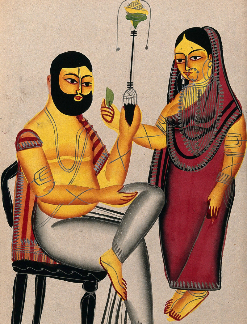 The Kalighat style, borne out of the changing society of nineteenth-century Calcutta (now Kolkata), was a popular medium among the patuas (painters) who worked in the vicinity of the Kalighat temple. These artists, who had arrived from rural villages in Bengal, began producing paintings that were a reflection of the community’s relationship with mythology and local history.