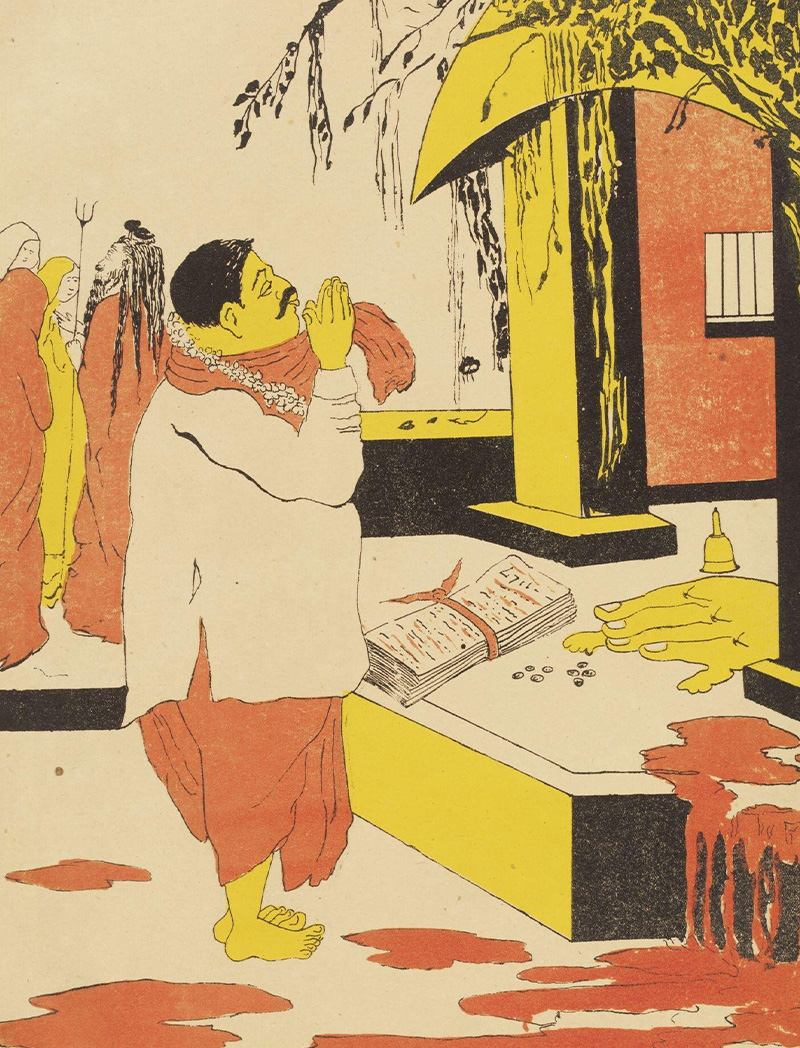 Profitable Devotion.; Gaganendranath Tagore, Kolkata; c. 1917; Lithography, printed in ink on paper; 44 x 30 cm ; Victoria and Albert Museum