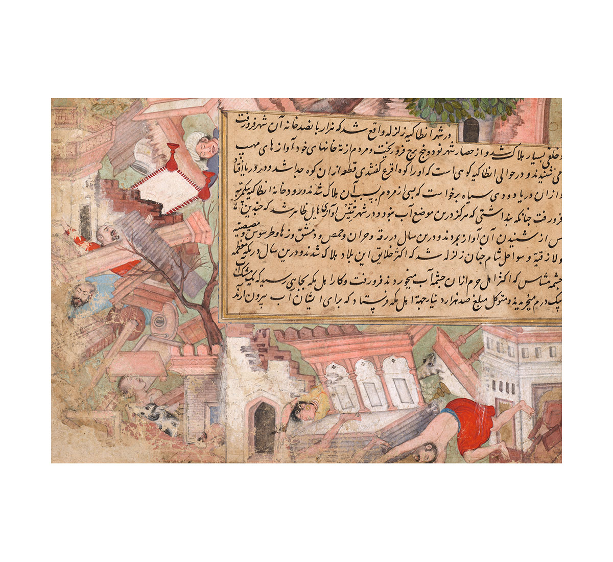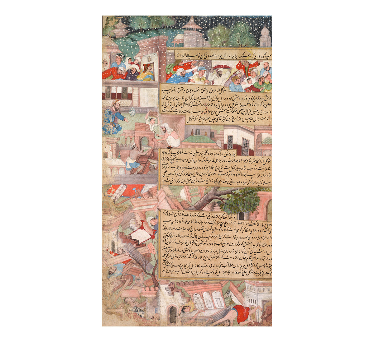 Page of Disasters, from the Tarikh-i Alfi (History of the Thousand [Years]); Mughal school, India; c. 1595; Ink and colour on paper; 41 x 22.6 cm; Cleveland Museum of Art