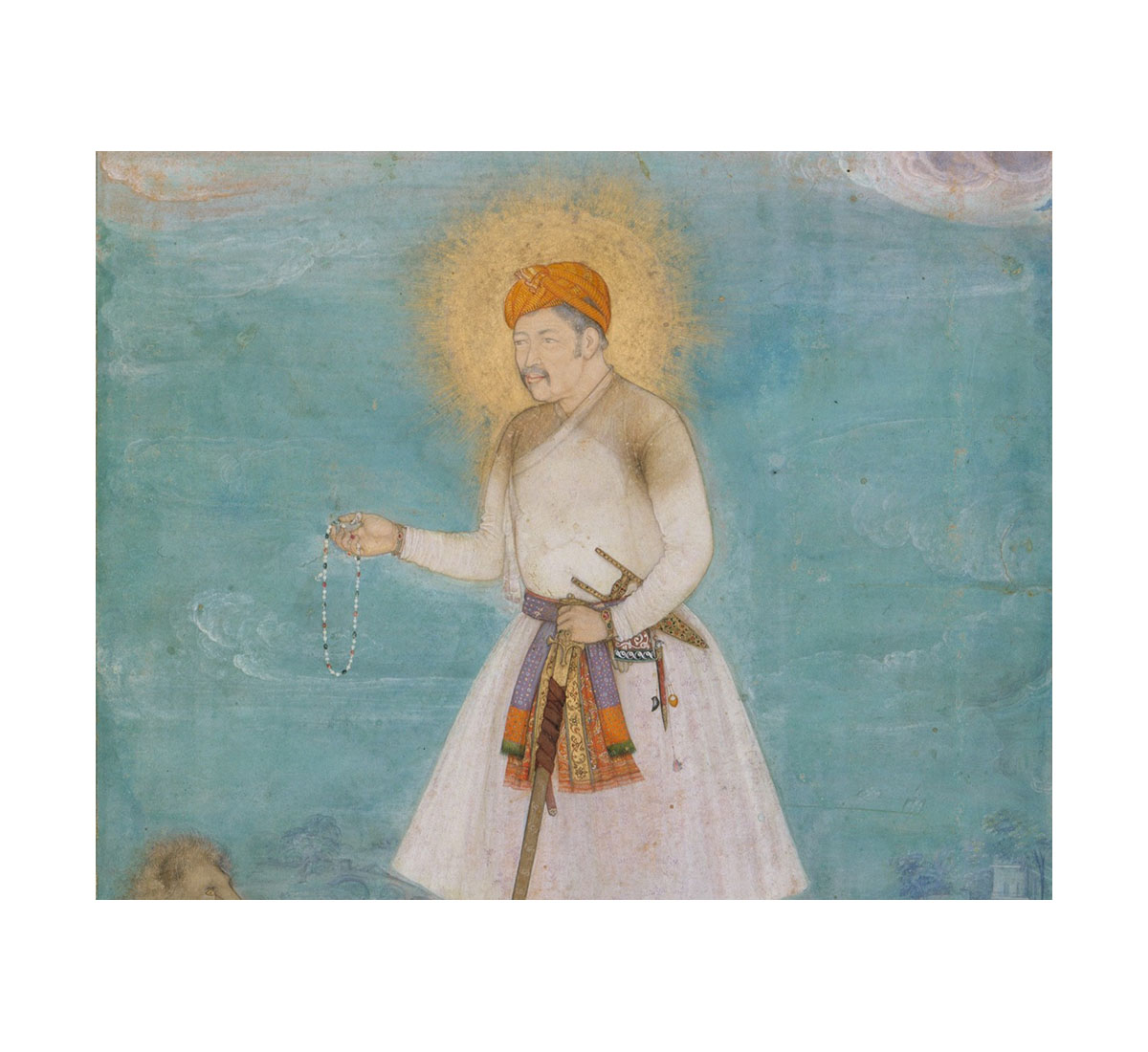 "Akbar With Lion and Calf", Folio from the Shah Jahan Album; Govardhan; c. 1630; Ink, opaque watercolour, and gold on paper; 38.9 x 25.7 cm; The Metropolitan Museum of Art