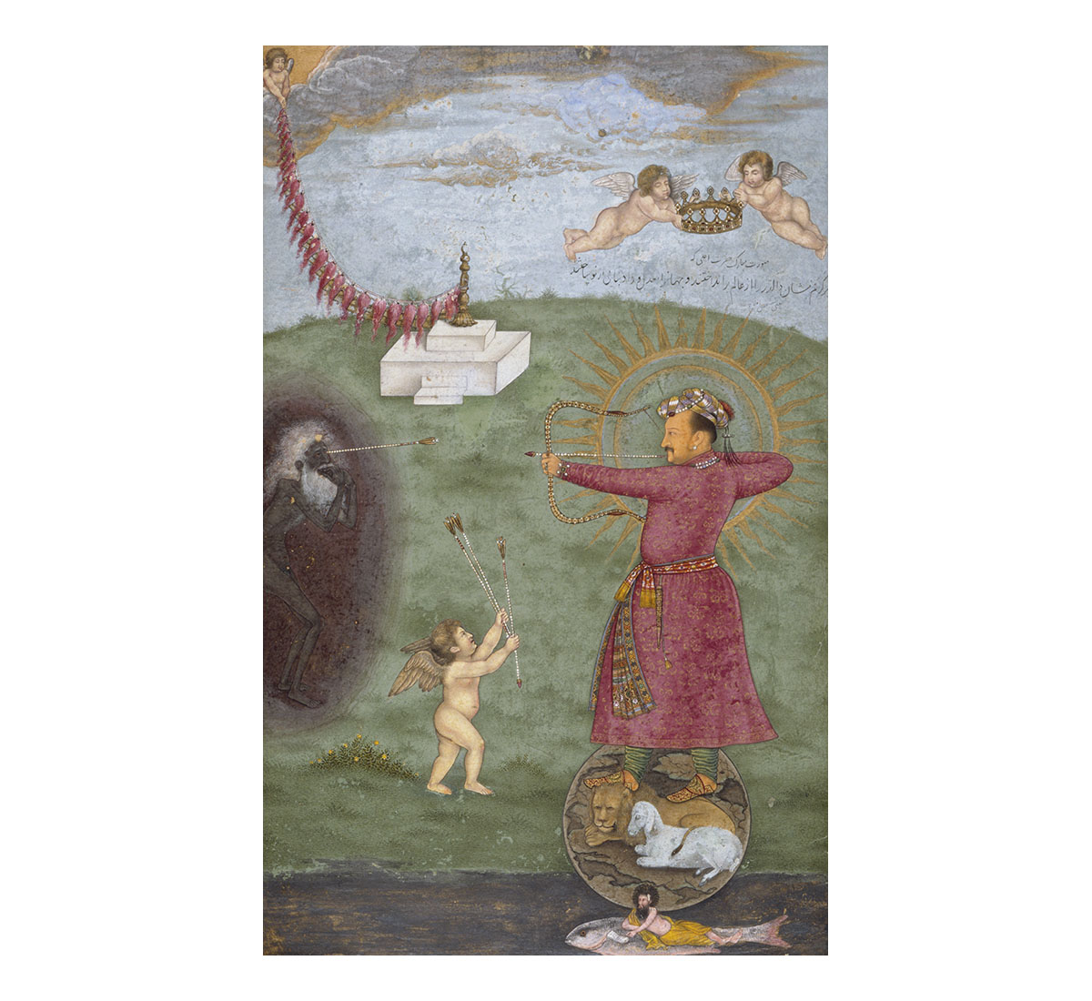 Emperor Jahangir Triumphing Over Poverty; Abu'l Hasan; c. 1620-162; Opaque watercolour, gold, and ink on paper; 23.81 x 15.24 cm; Los Angeles County Museum of Art