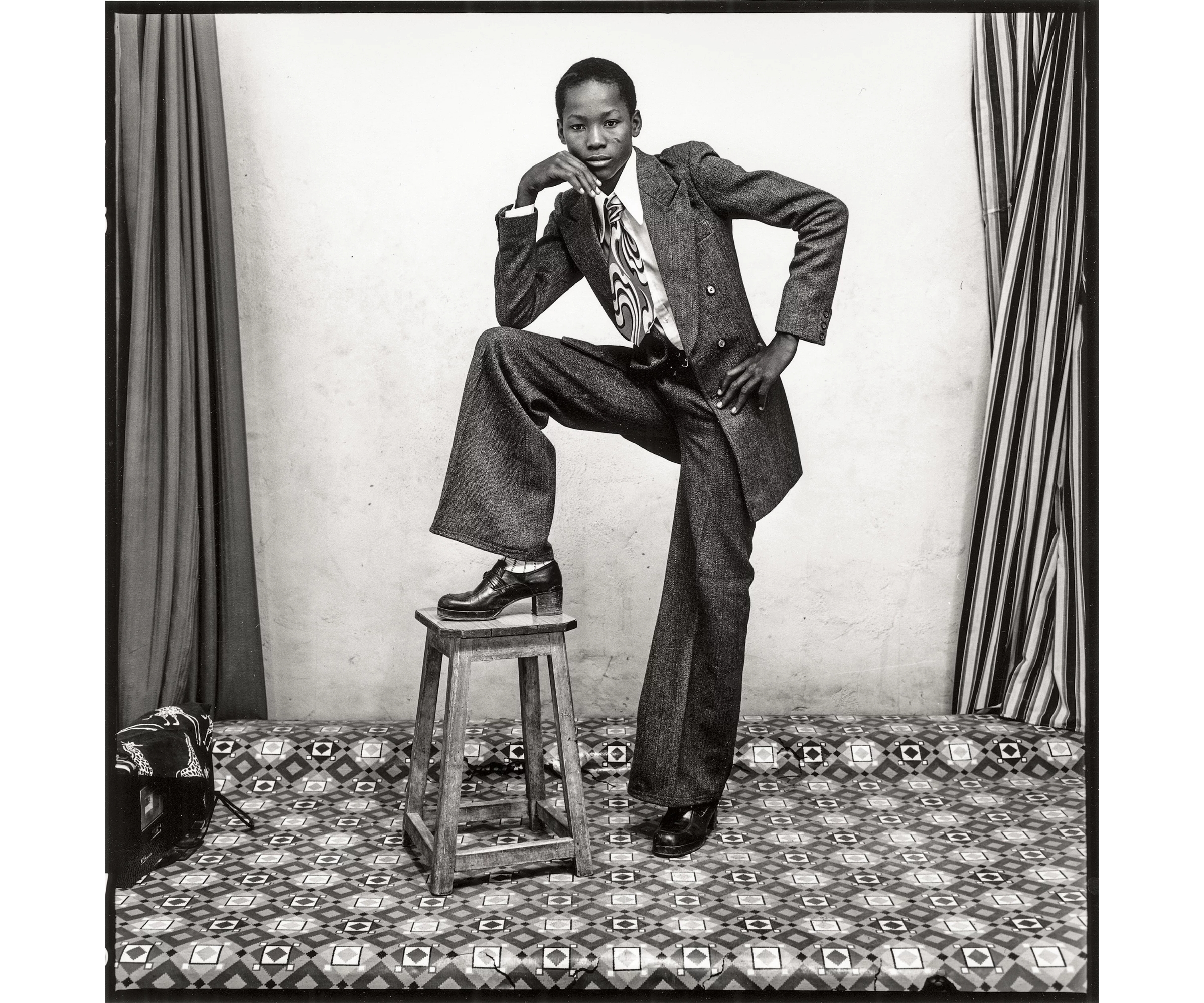 In Lebanon, a photographer by the name of Hashem El Madani dedicated much of his fifty-year career, starting in 1948, to photographing nearly all the residents in his native Sidon, including through the Lebanese Civil War. During this time, it wasn’t uncommon for Madani to encourage his sitters to use props he had bought for his studio, a practice that he shared with Punjabi, whose portraits were often also furnished with prop ties, sunglasses, cameras, bottles and magazines.