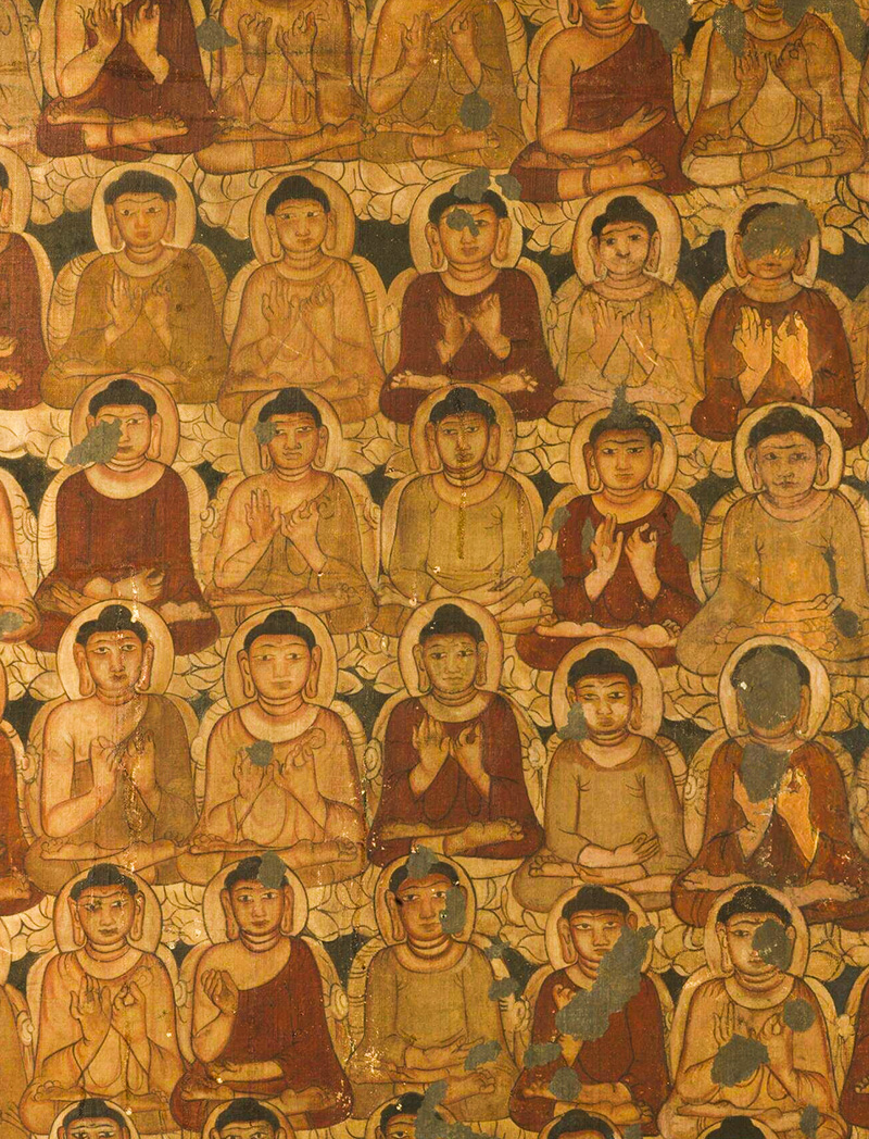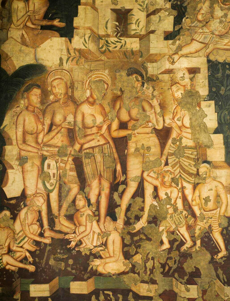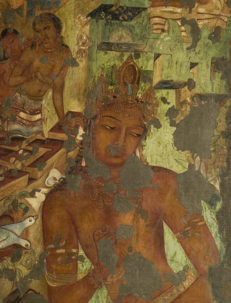 Detail, Copy of Painting Inside the Caves of Ajanta (Cave 1).; John Griffiths, Bombay School of Art; c. 1877–1878; Oil on canvas; 244.5 x 250 cm; Victoria and Albert Museum