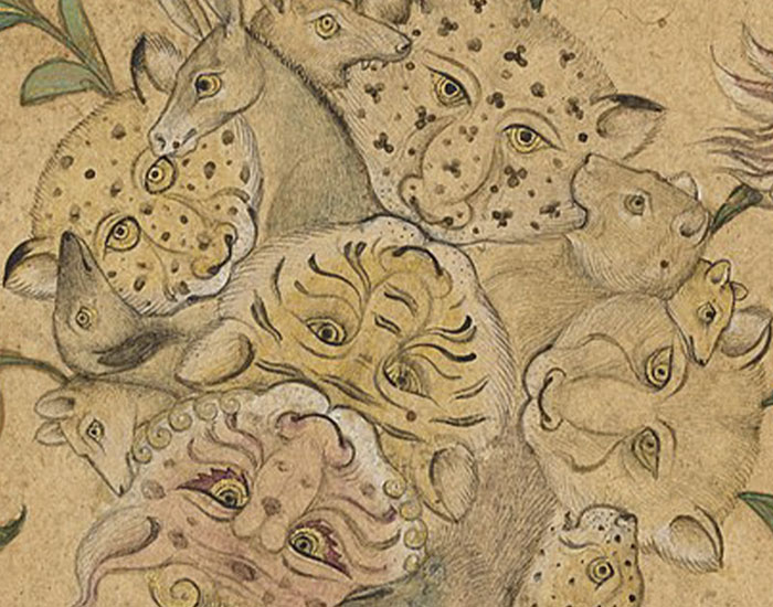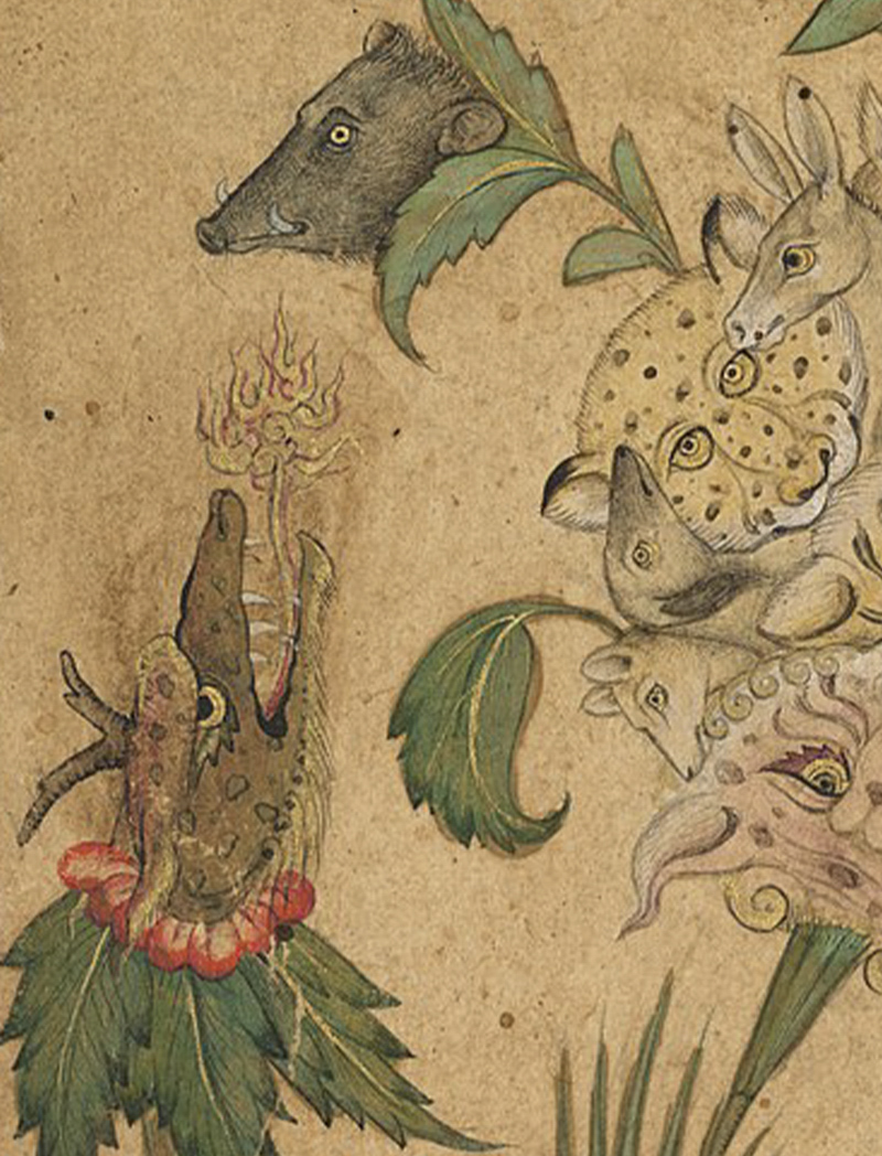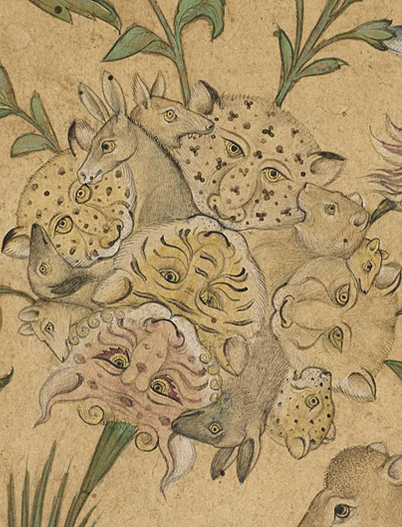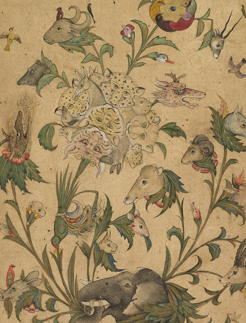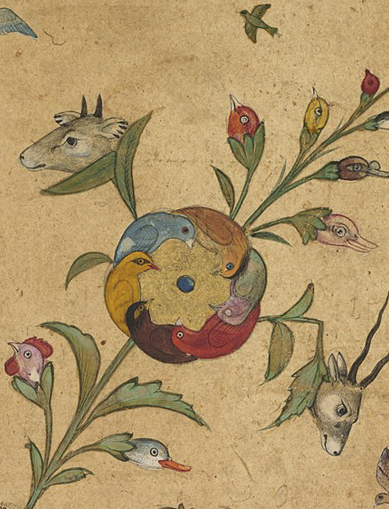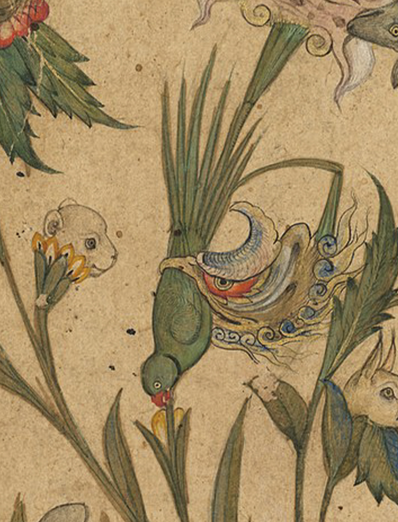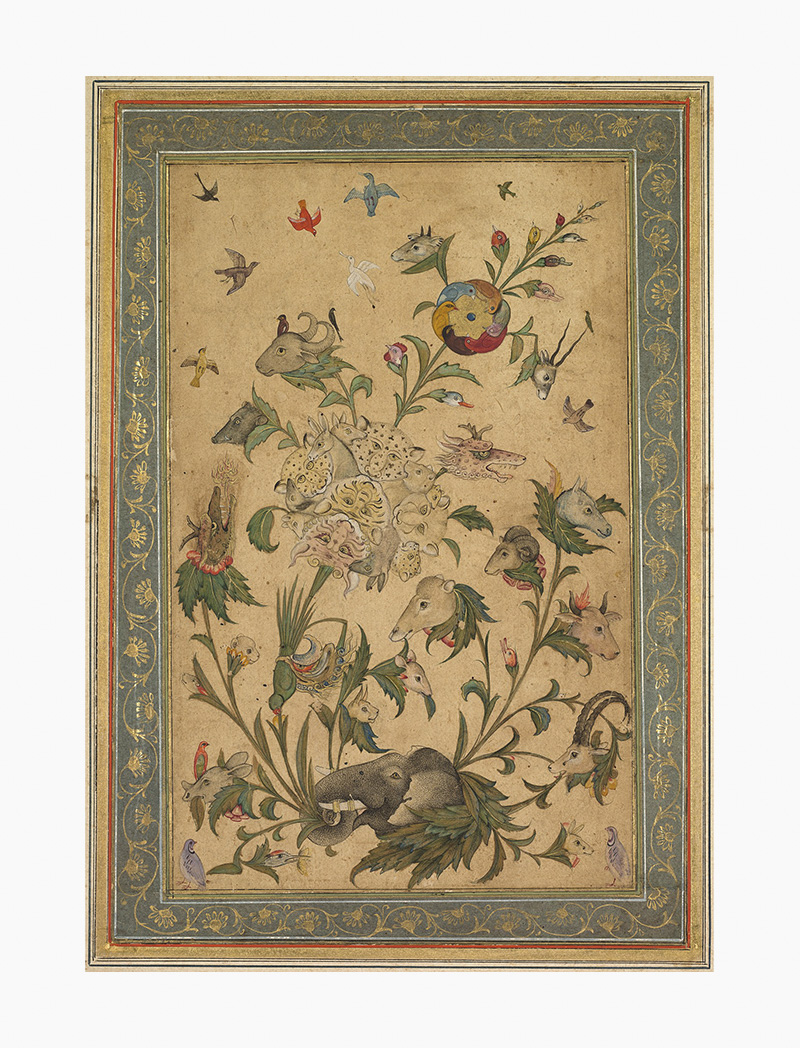 Detail, A Floral Fantasy of Animals and Birds (Waq–waq).; Mughal; early 1600s; Opaque watercolour and gold on paper; 37.6 x 26.6 cm; The Cleveland Museum of Art