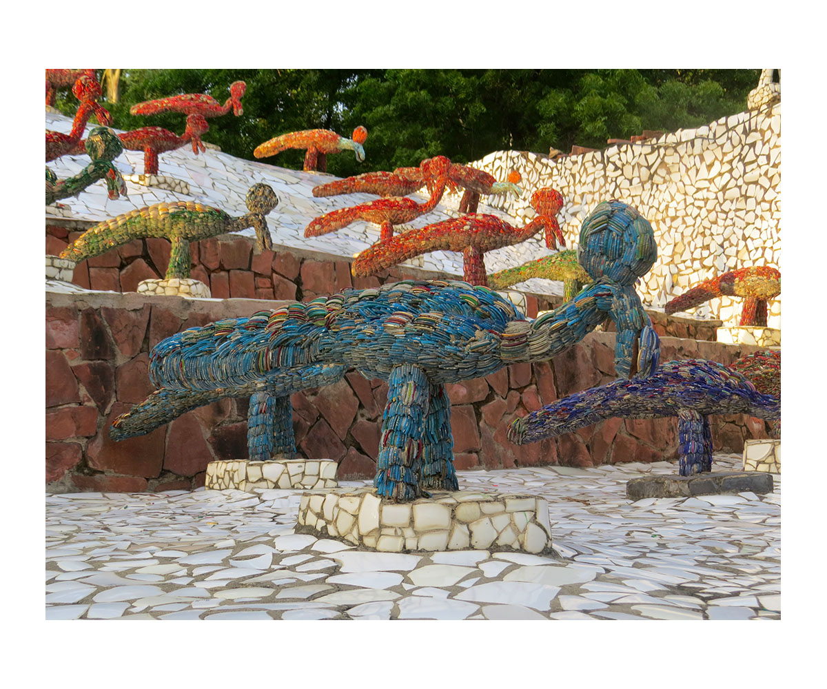 During that time, Chand’s interest in creative and artistic endeavours led him to experiment with different creations, from self-made sailing vessels that he would test on the newly made Sukhna Lake, to collecting unique rocks from local riverbeds. From 1960 onwards, Chand began to fashion whimsical structures by arranging these rocks in differing shapes, also using pieces of garbage and other materials that were salvaged from the massive urbanisation projects throughout the city. The project grew to include a nursery, consisting of local plants which he grew alongside the rocks and recycled trash on land adjacent to the city’s Capital Complex 1.