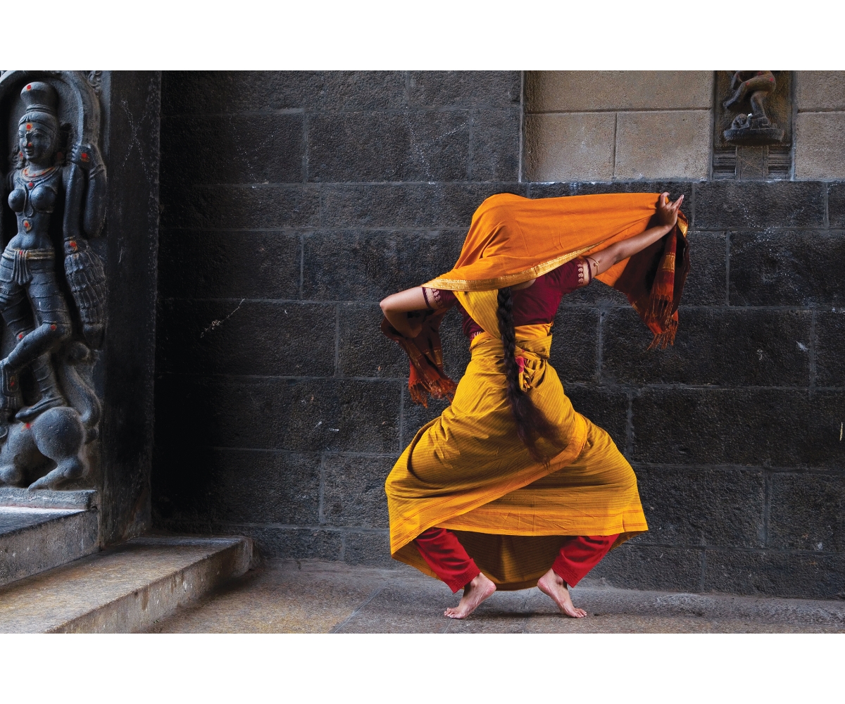 Kathak dancer Ashavari Majumdar wearing a cotton angarkha kurta with a handwoven dupatta from Chanderi, Madhya Pradesh, from ‘Dance of the Weave’, Kolkata, West Bengal ; c. 2008; © Briana Blasko
