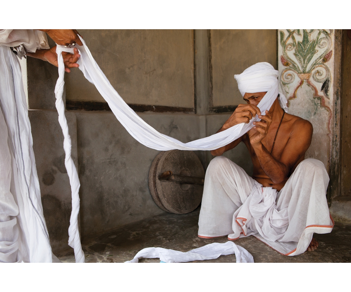 The symbiotic relationship between touch, bodies and objects, and the role of tactility in forging a connection between them, finds expression in American photographer Briana Blasko’s book Dance of the Weave, where she explores the link between traditional Indian dance and textiles — which have much in common — through a series of still images. As costume designer Sandhya Raman notes in the beginning of the book, they are both ‘visual, tactile and structured’ and ‘driven by passion and complement each other’.