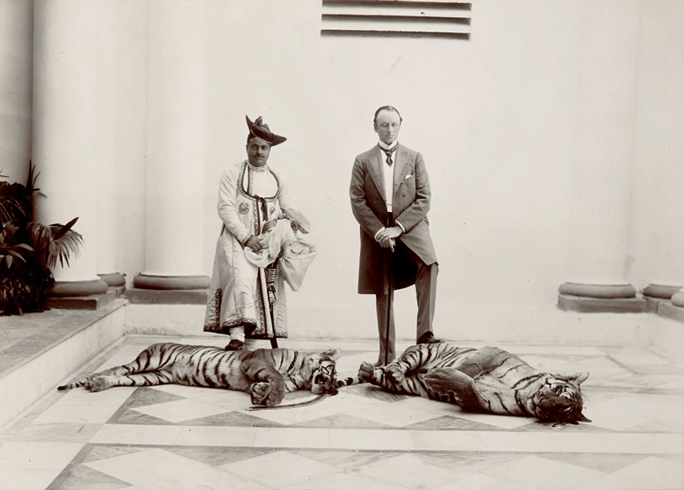 First tiger shot by HE Lord Curzon in India, Gwalior from the album HE Lord Curzon’s first tour in India; 1899. Photograph: Lala Deen Dayal, Courtesy The British Library