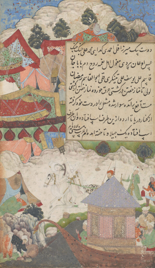 A Drunken Babur Returns to Camp at Night (detail), from Baburnama; Farrukh Beg; 1589; Opaque watercolour, ink, and gold on paper. Courtesy National Museum of Asian Art, Smithsonian