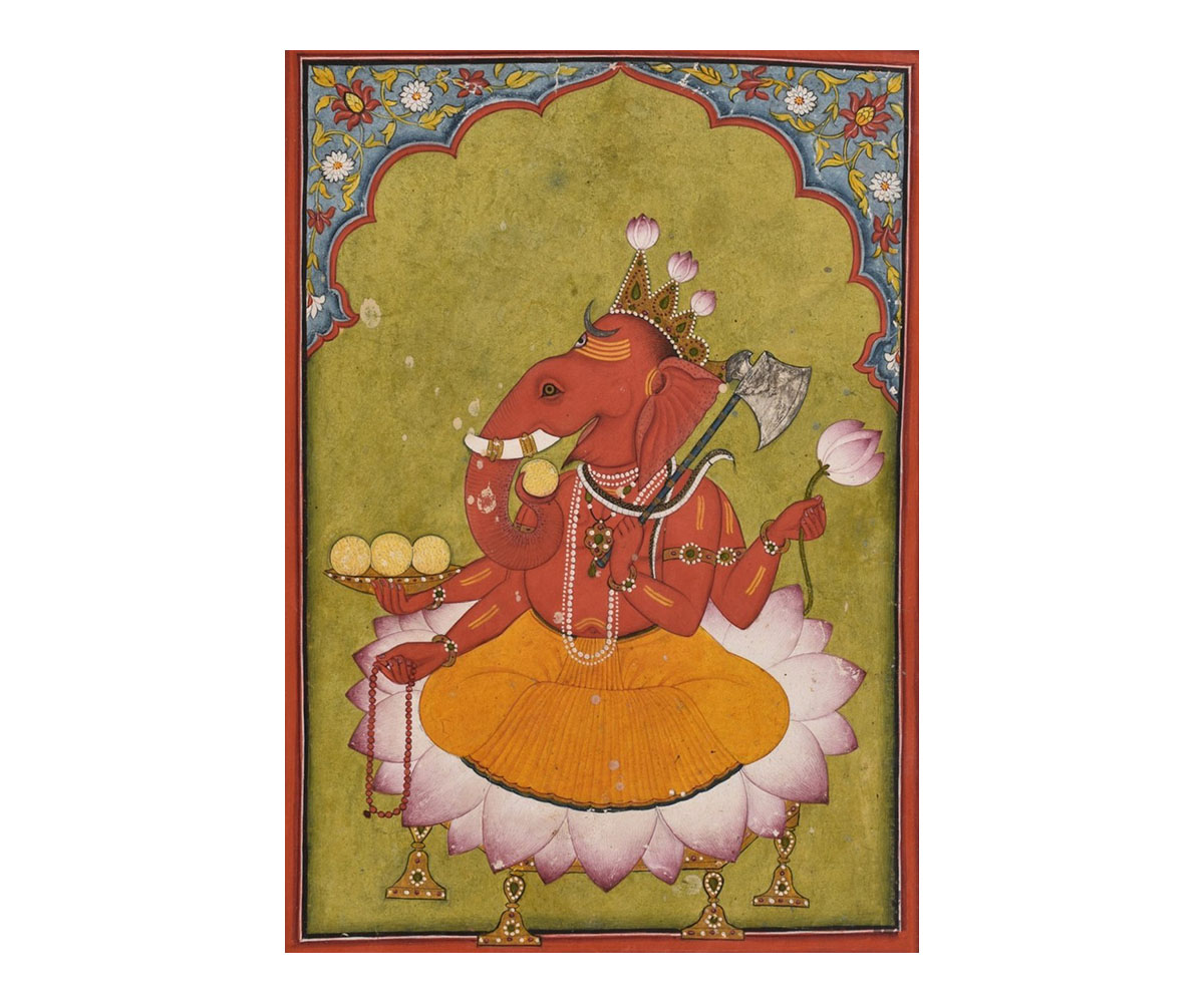 Lord Ganesha Relishing Modak; Basohli; c. 1746; Paint on paper; National Museum, New Delhi, Wikimedia Commons
