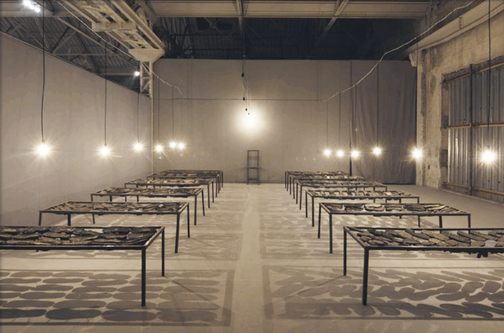 For instance, Vivan Sundaram’s powerful installation 12 Bed Ward, seen through the lens of dhvani theory reveals a poignant exploration of memory, trauma, and the human condition. The setting, a recreation of a derelict refuge, immediately evokes feelings of confinement. The bare empty beds serve as a powerful dhvani, signifying absence and the removal of identity within institutional walls. The decaying environment further strengthens this sense of neglect, hinting at forgotten stories and the passage of time.