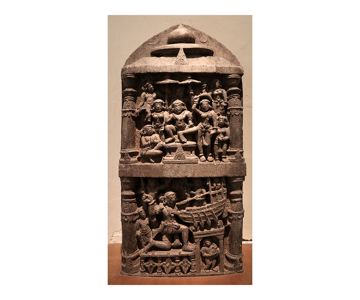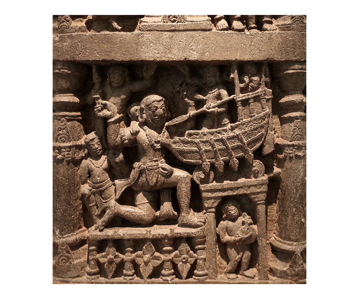 Detail, Hero Stone Depicting Naval Battle; Kadamba Period, Malcornem Goa; c. 12th century; ASI Museum, Goa via @vajrayudha11 on Twitter