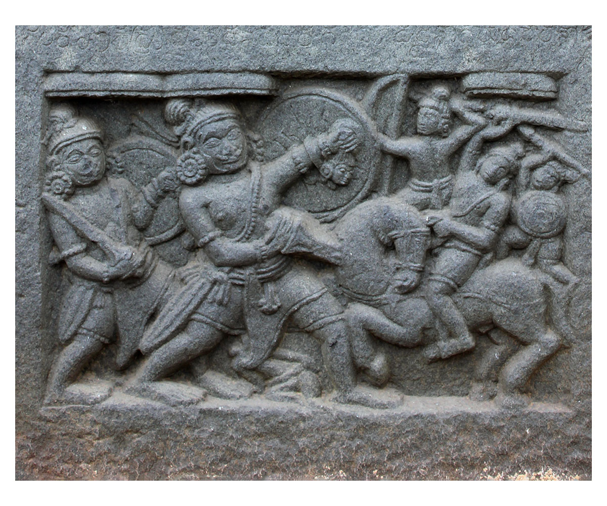 Warfare and violence were thus ubiquitous in the political economy, culture, and ritual life of medieval India. Hero stones act as a snapshot of all of these aspects and the lives of the men who participated in them. Some of these memorials reveal another, softer side of these individuals. The Atakur hero stone, commissioned in 959–960 CE, is dedicated not to a warrior but to his dog, Kali, who died fighting a boar. Even if they are expressed in a form of martial imagery that is very distant to us today, the emotions that Kali’s death must have provoked are universal, reminding us that the inner worlds of medieval Indians may not have been so different from our own.