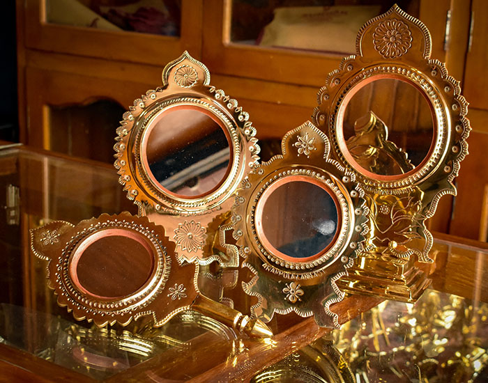 An integral part of the ritual and ceremonial landscapes of Hinduism in Kerala, mirrors serve as far more than reflective surfaces. Transformed from an everyday fixture into an auspicious object representing the manifestation of divinity, these polished metal mirrors of the Malabar region are imbued with ritual significance and symbolic meanings.