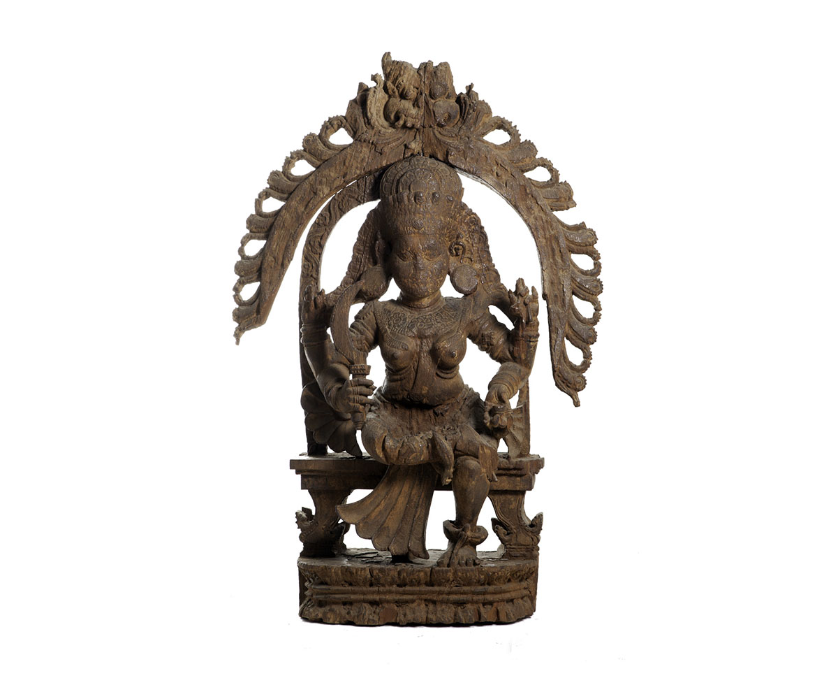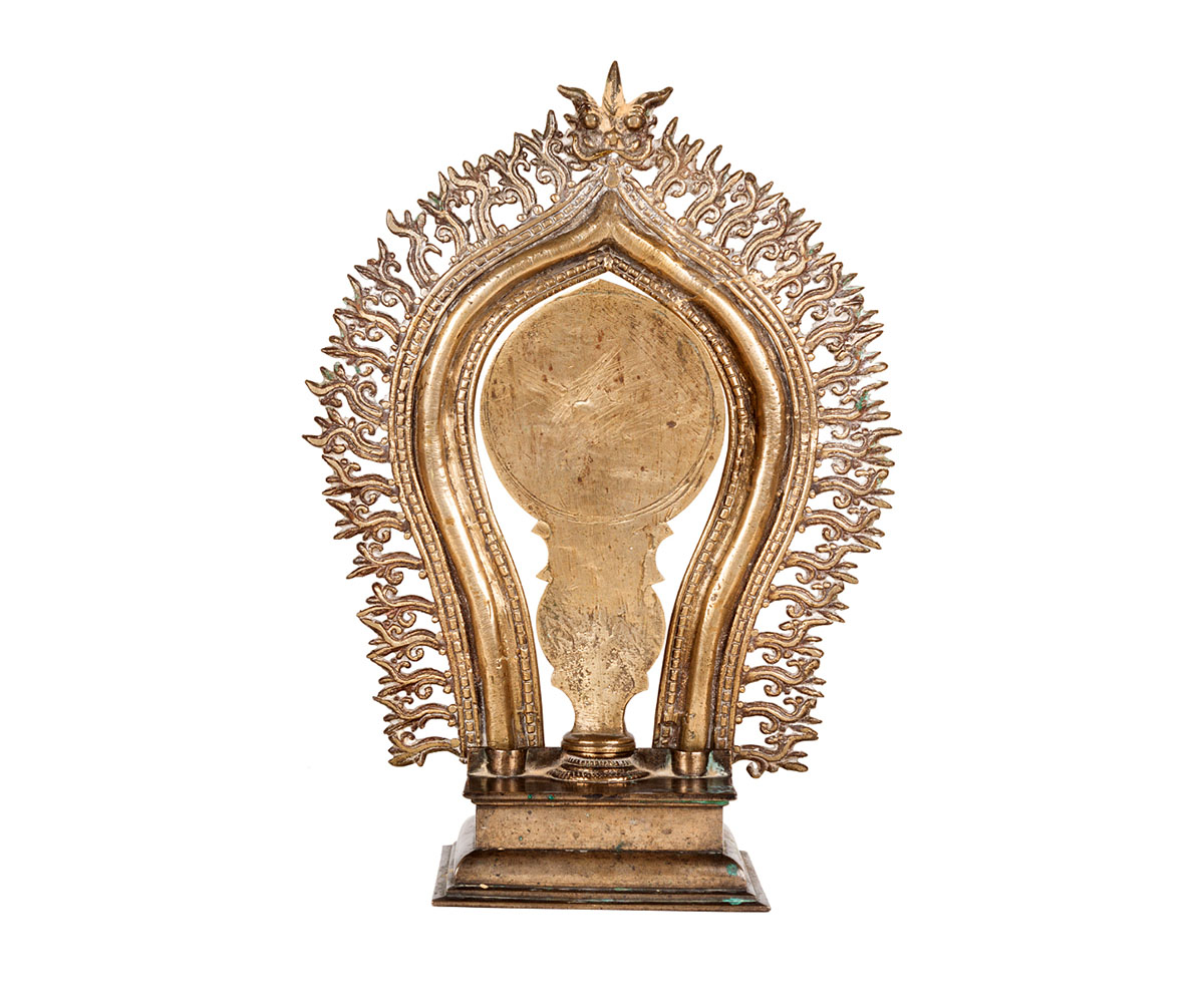 Cast by the Musaris, the traditional metal craftspeople of the Malabar region, the sacred mirror acts as a conduit through which one realises the innate presence of the goddess in everything — including oneself.